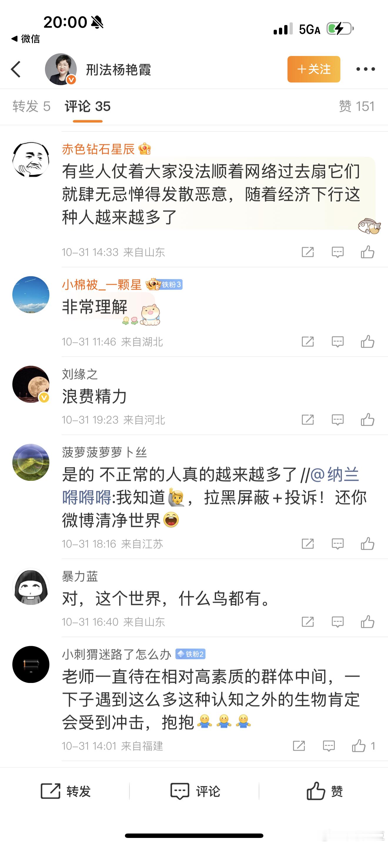 比如我分享一个心理学常识,杨艳霞就大张旗鼓指控我“抄袭”,我做两份工作就定罪我“身份造假”,我提醒网友转载网络信息,保存信息来源,就污蔑我宣扬“传谣不违法”,以此为由带领粉丝攻击司法机关的官微。