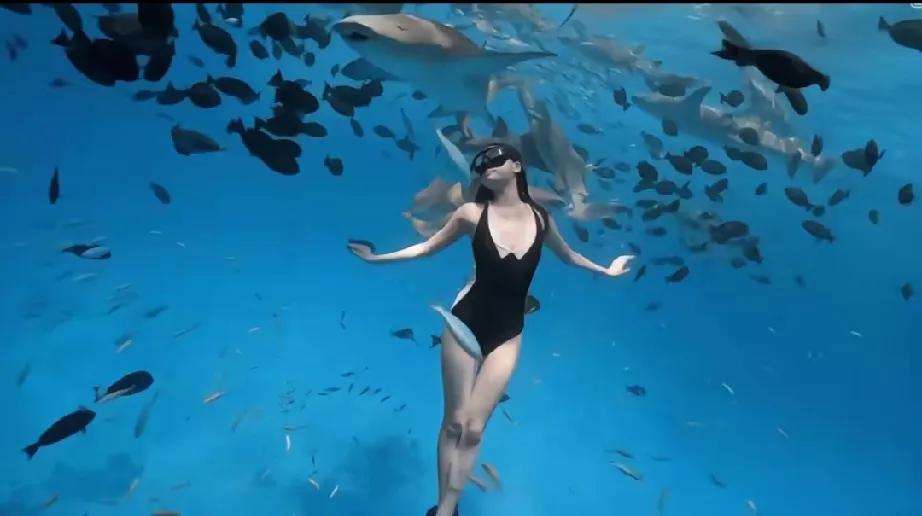 家人们谁懂啊!一直被大家昵称为“关小怂”的关晓彤,这次直接来了个大反转!她居然独自穿上泳衣,一头扎进水里潜水去了。 更让人惊掉下巴的是,她还和一群鲨鱼淡定合影!瞧那画面,关晓彤在鲨鱼群中镇定自若,脸上洋溢着自信又灿烂的笑容,美得简直要冒泡。 曾经那个大家印象里有点小怂的姑娘,此刻完全变身勇敢无畏的“海洋女战士”。这波操作太绝了,不得不说,关晓彤这次真的惊艳到所有人,狠狠为她打call! 关晓彤 关晓彤写真照
