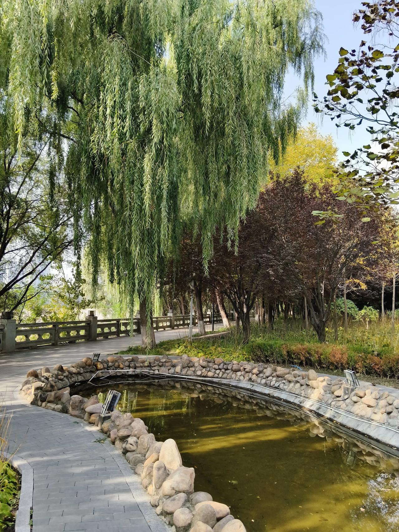 柳树披上他那一肩的长发,在黄河边摇曳,真的是美不胜收。
