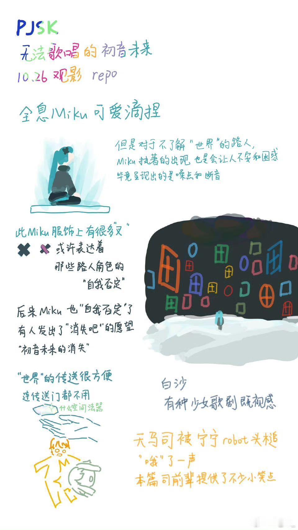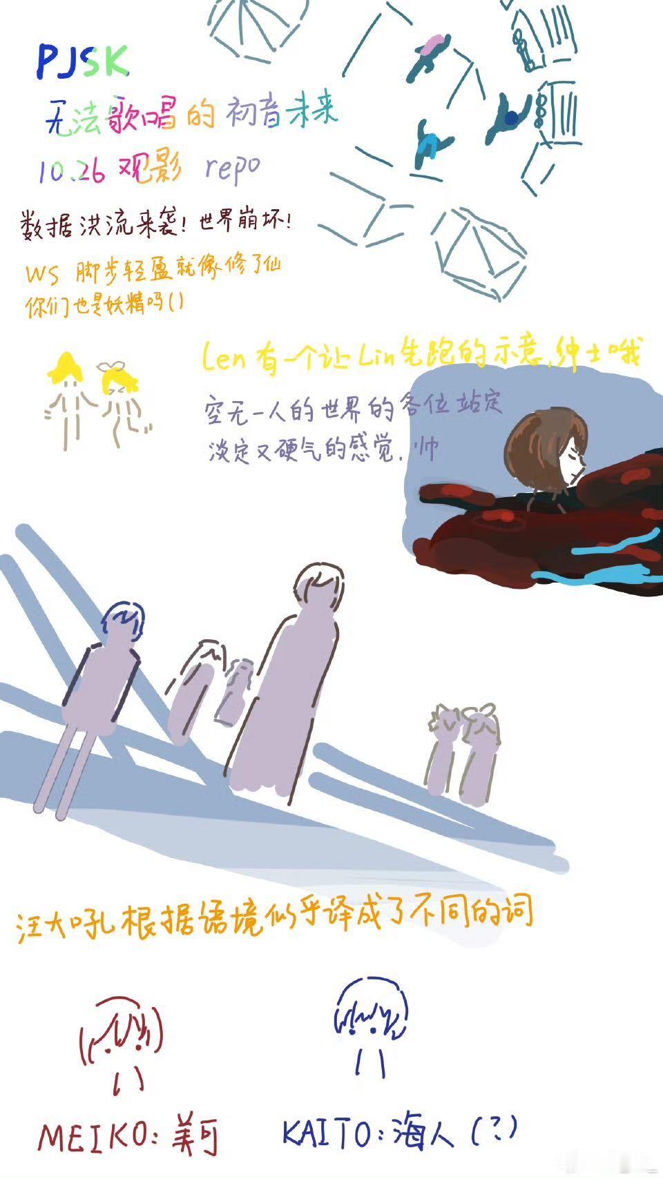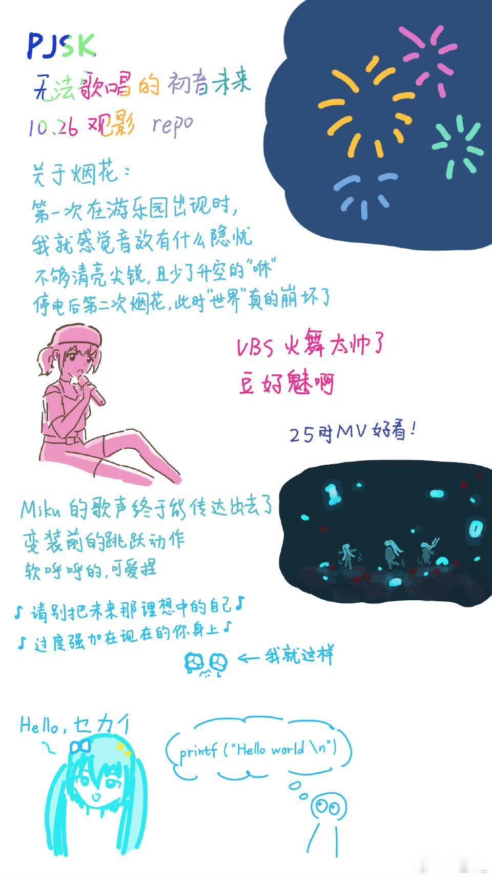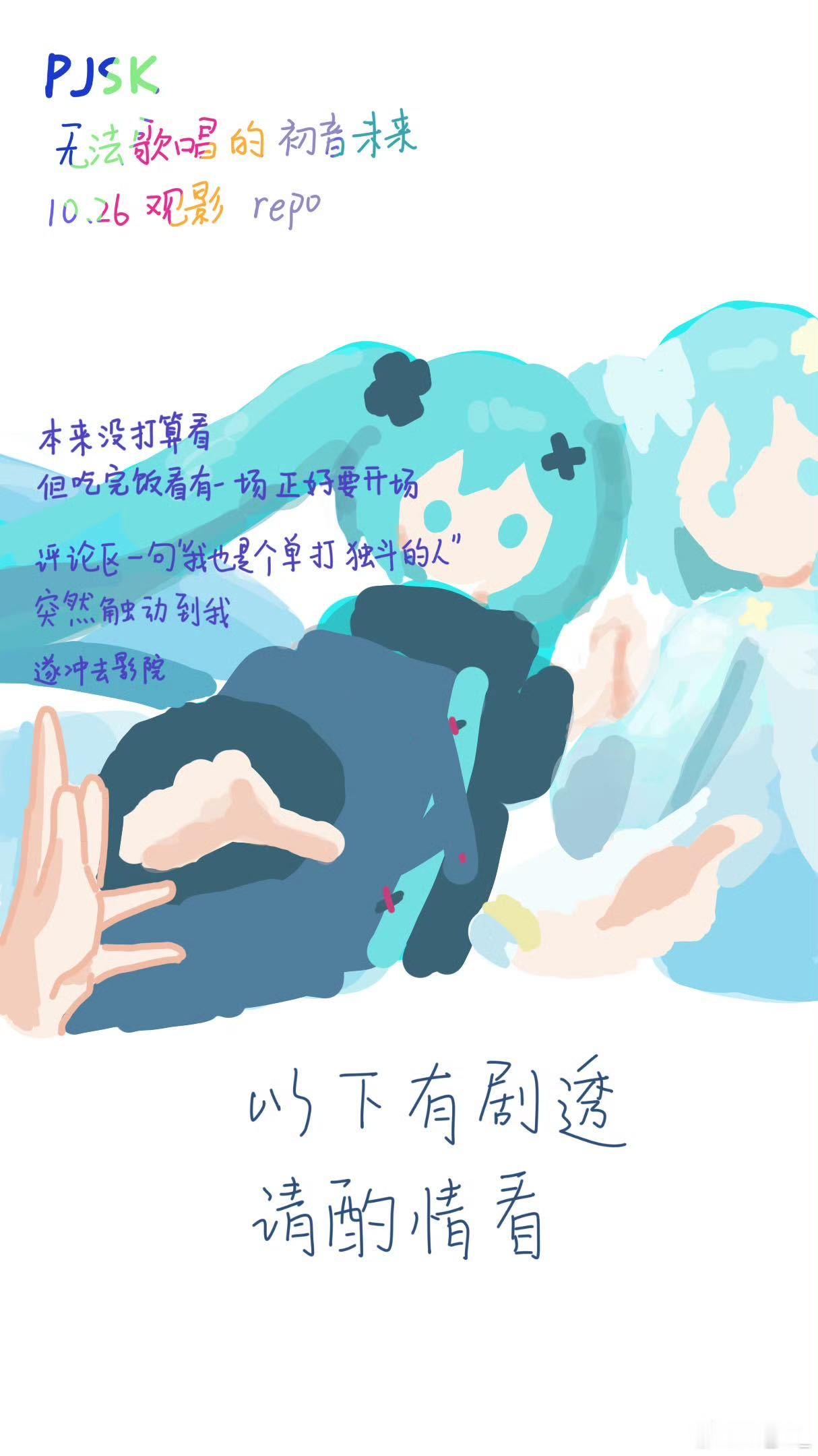 所以没有看这个《世界计划:无法歌唱的初音未来》的人别再犹豫了,再不看同担的梗都要跟不上了,帮初音未来传递声音怎么能少了我?已经亲测电影确实蛮好看,歌曲也特别好听,初音未来失去了歌声后被五个其他组合的成员们偶遇并帮助她找回了歌声,整个过程又燃又感动,最让我意外的还有映后演唱会的打call环节,真是让我解锁了影院新体验,次周还有特典,看完的朋友们记得领取。所以此刻让我看看谁还没有被这个“ki豆 头都裤哈子”洗脑hhhh👀👀👀