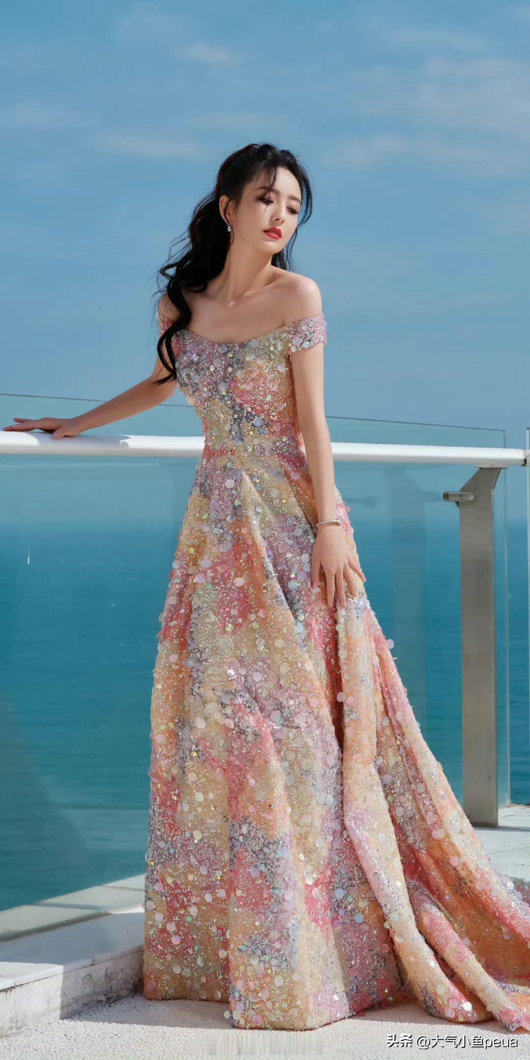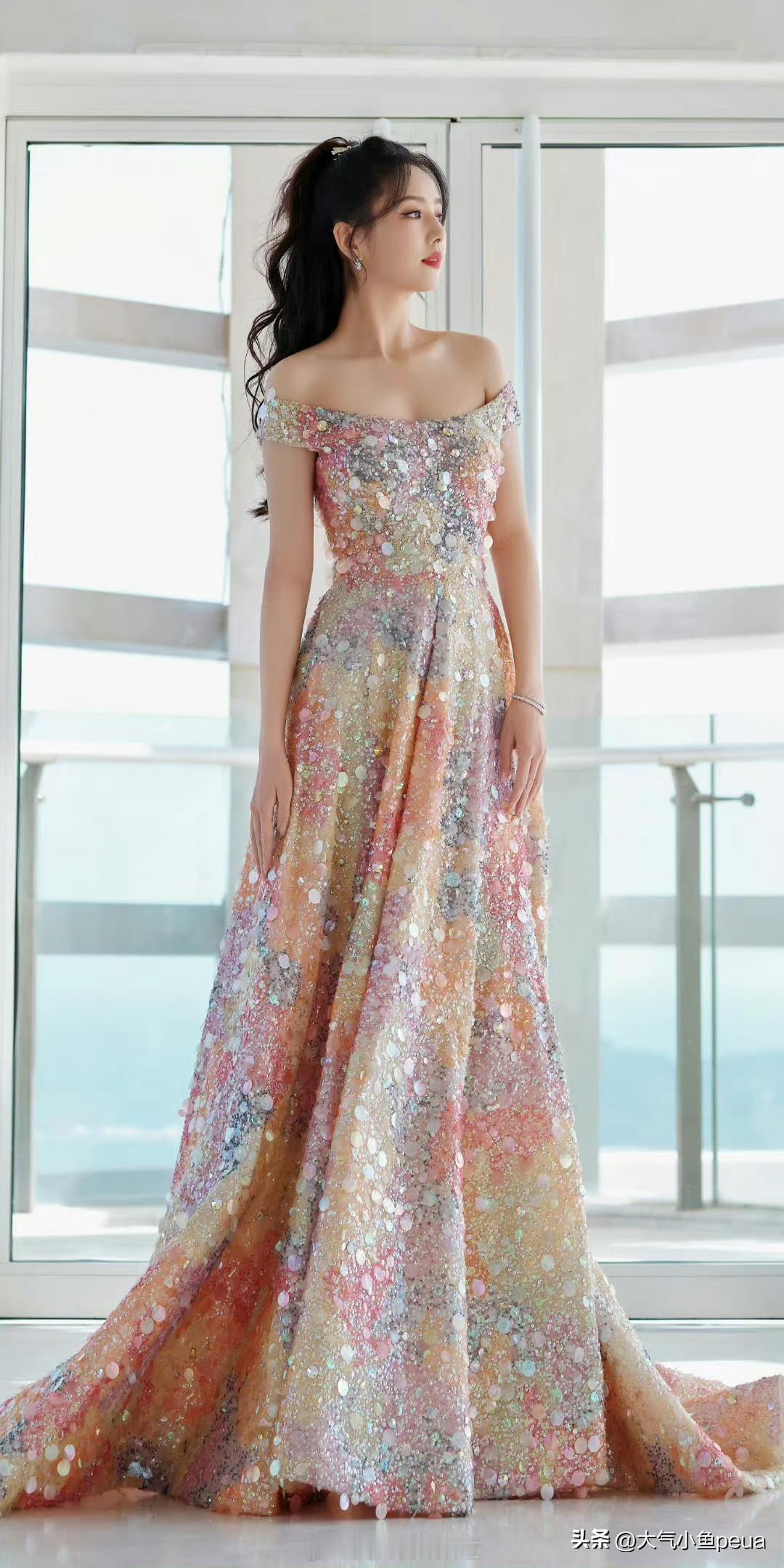 佟丽娅这身真是美到失语! 彩色亮片碎钻裙在她身上简直像把银河穿在了身上,每走一步都在发光。 这种高难度的亮片元素居然被她穿得毫不俗气,反而显得仙气又高贵。 剪裁完美展现她优越的锁骨和肩颈线,束腰设计更是把蚂蚁腰勾勒得淋漓尽致。 她站在那儿就像刚上岸的人鱼公主啊! 眼波流转间都是温柔星光,这颜值和气质真是内娱顶级配置了!