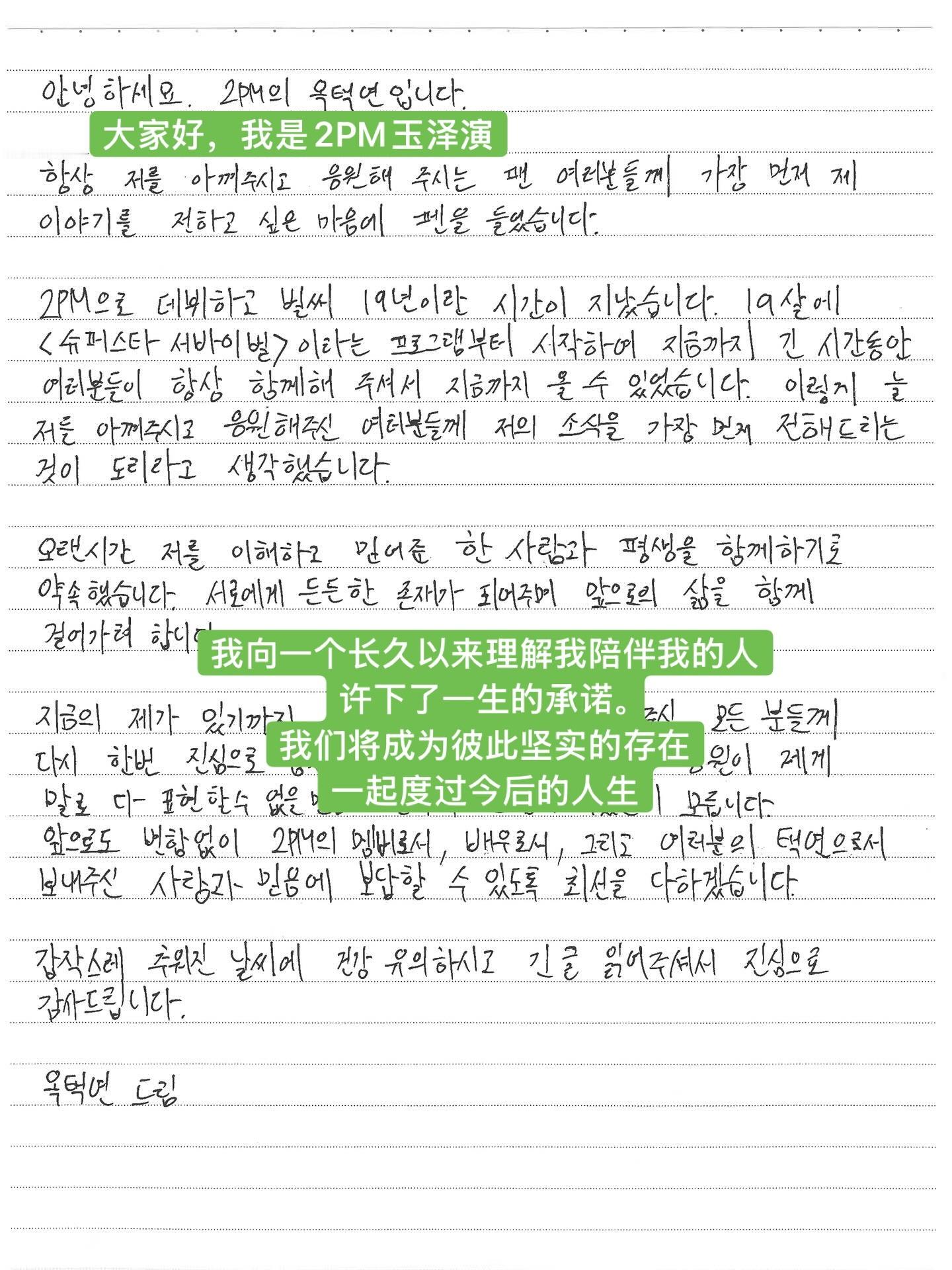 经纪公司:玉泽演与长期交往的人约定共同度过彼此的人生。婚礼将于明年春天在首尔某处非公开举行。因为配偶是素人,所以细节将以非公开的形式进行,希望大家谅解。婚后玉泽演也会以好的作品和多样的活动与大家见面