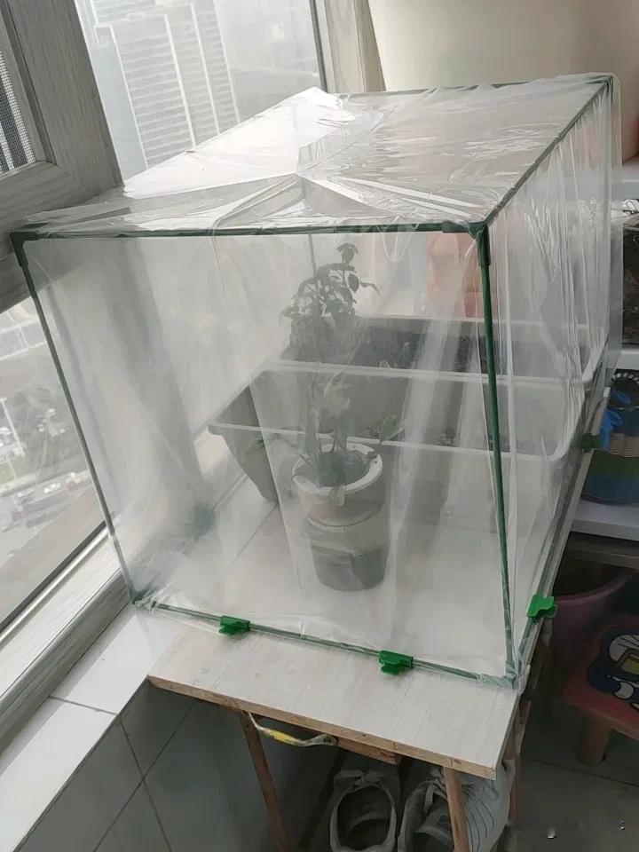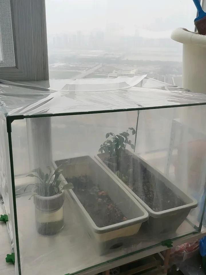 我买的蔬菜保温棚装好了,如果不出意外的话,今年冬天,可以吃到自己在家种的菜。 昨天,保温棚的配件已收到,里面是包塑料棍,还有一些插件,一个塑料保温膜,就这几样小东西要了我25块钱,感觉有点小贵。 做起来小保温棚看起来不大,长.宽有50厘米×40,高度是50厘米。 我把阳台的杂物归拢了一下,清出来一块地方,用以前准备丢,还没来得及丢掉的花架拆开,重新组装了一个架子。 上面放了一块木板,我把以前种的月季花盆,和准备种菜的盆子一起放进保温架中,看着里面还宽敞,又把一盆水培的一帆风顺,也放了进来。 这盆一帆风顺,我养了两三年,不知道怎么回事,这花我养得越来越小,花也不怎么开,前几天我把它丢垃圾桶里,准备下楼的时候带下去扔掉。 但是想着这也是几棵小生命呀,毕竟我也养了好几年,一时舍不得,又把它捡了起来。 忙活的几个钟头,这花棚总算是弄好了,我买的菜种子,这两天也快到。 到时候我准备撒些香菜、上海青种子,再种上几棵香葱。 我种的香菜、香葱可以做佐料,上海青小白菜随手摘来下面条吃。 以后这些菜都不用花钱买,真好!