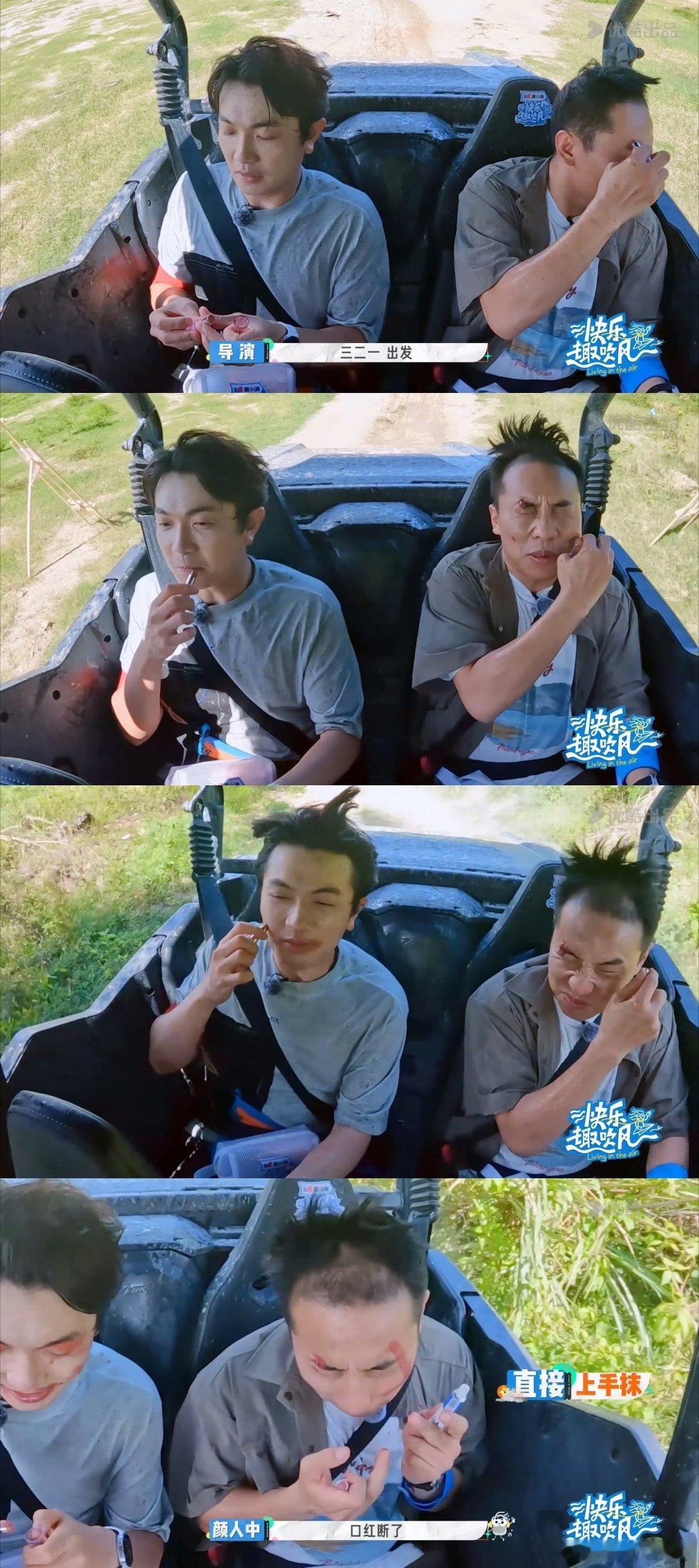 徐志胜复刻给李雪琴画腮红徐志胜这化妆技术,绝了🤣!在越野车上执着地给人画腮红,一圈圈涂,那脸颊越来越红。嘿,和当年给李雪琴化妆简直一模一样,技术没啥进步,却笑料满满~