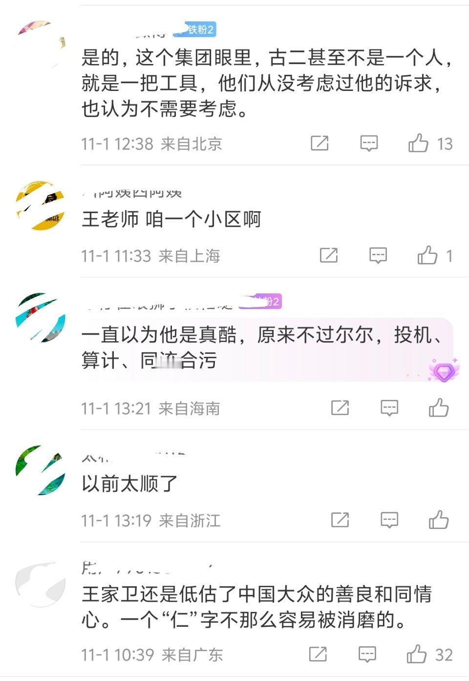 说的没错。王家卫牺牲普通人自以为讨好了大陆影视圈,实际低估了中国人的义。没想到吧,这次被普通人掀翻,走下神坛。其实上次曝光录音,王家卫完全可以和古二沟通解决,无论是名还是利,又不是给不了。结果繁花剧组一纸声明,傲慢之极。堪称灾难性公关。