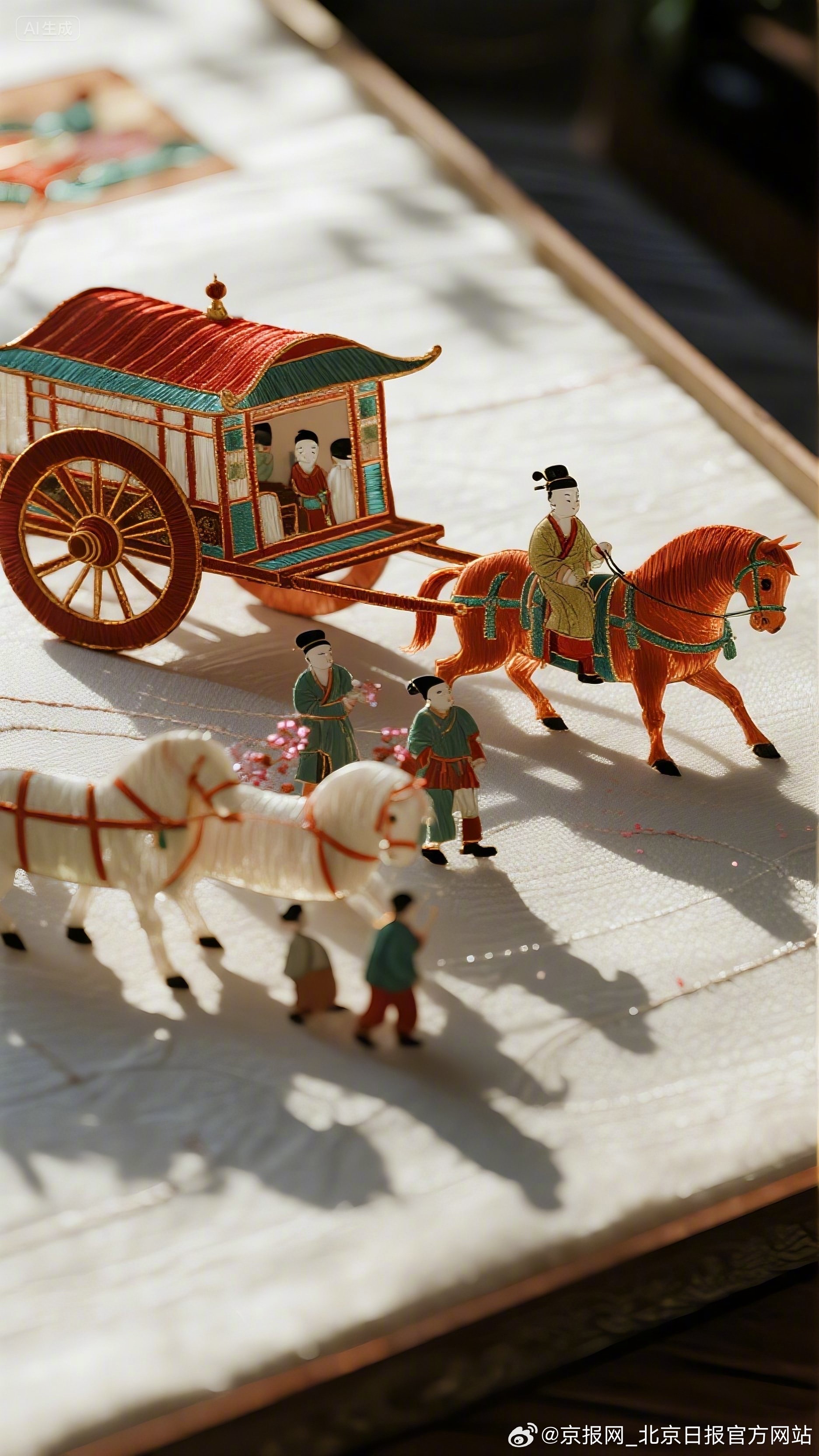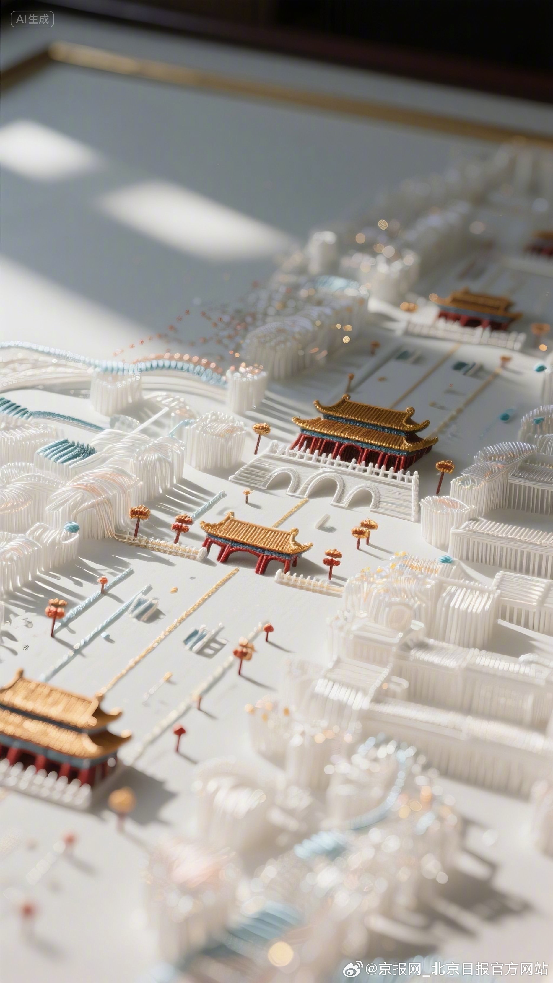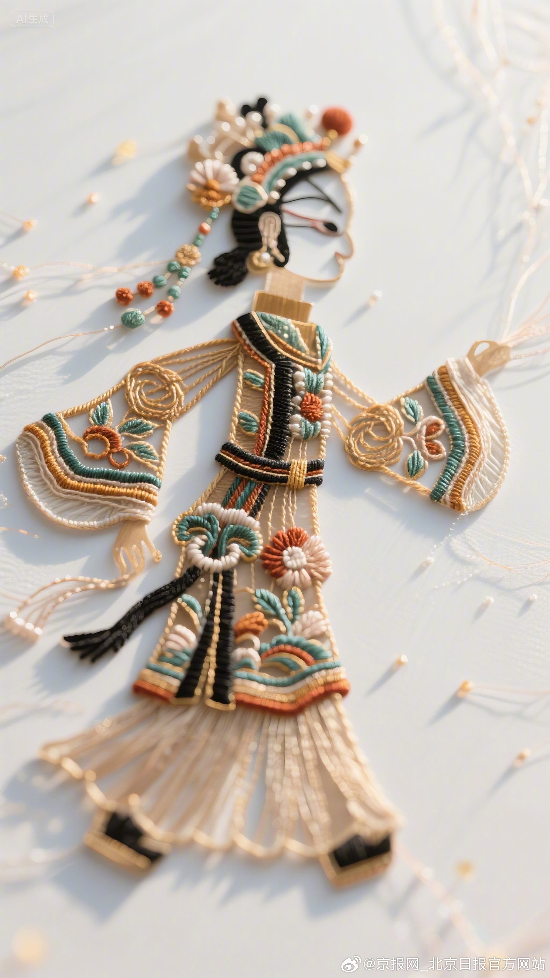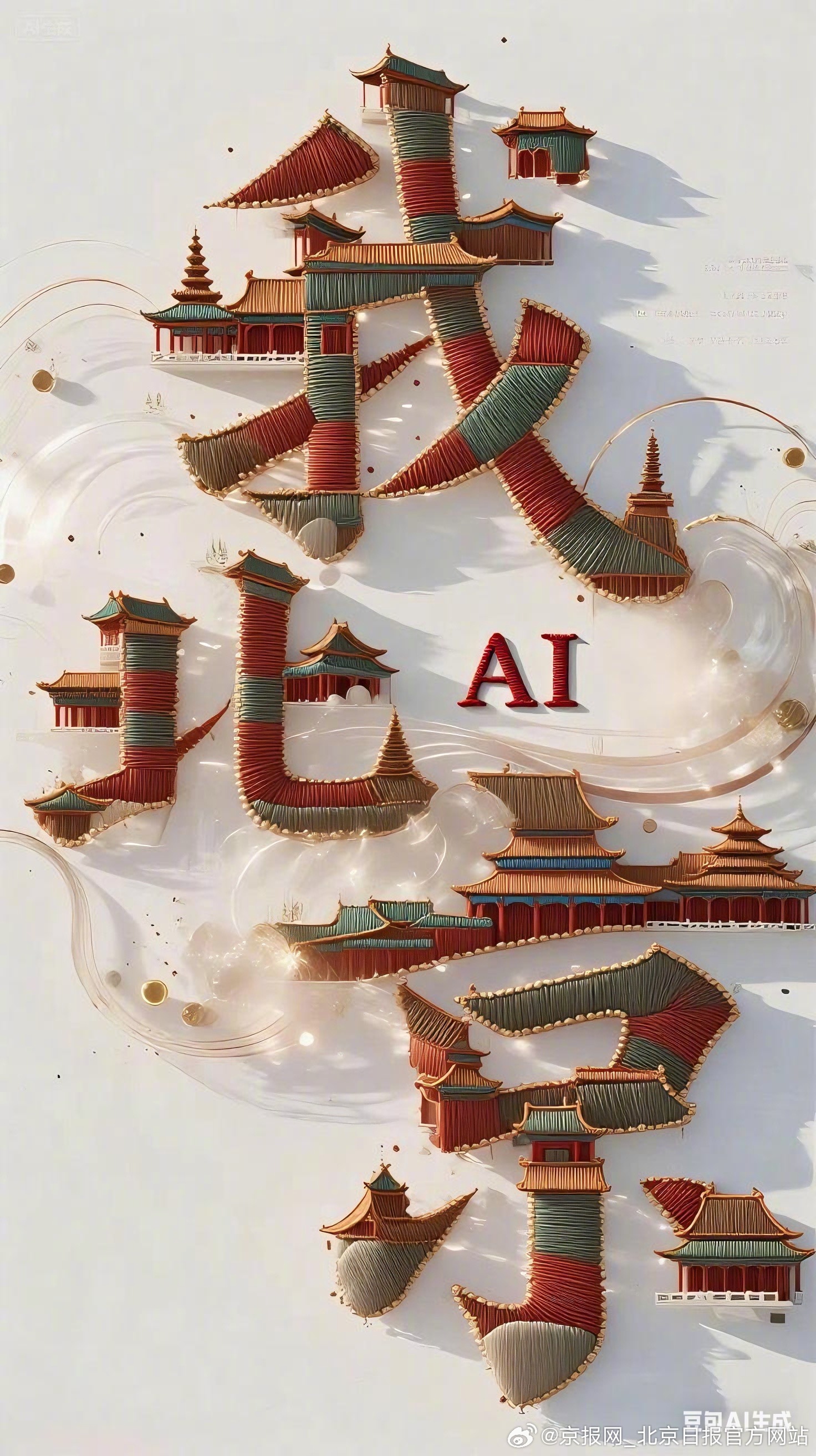 #AI看见京绣另一种可能#【我AI北京|京绣AI北京】#我AI北京第二届城市形象创作征集优秀作品展播# 当针脚化作数据,丝线转为光影,AI以算法为针,代码为线,将《千里江山图》的壮丽、皮影戏的灵趣、穆桂英的英姿与北京城市风貌一同织入立体画卷!让京绣从平面卷轴跳成 3D 盛景,唱出传统非遗的破圈新声!(作者:王颖)