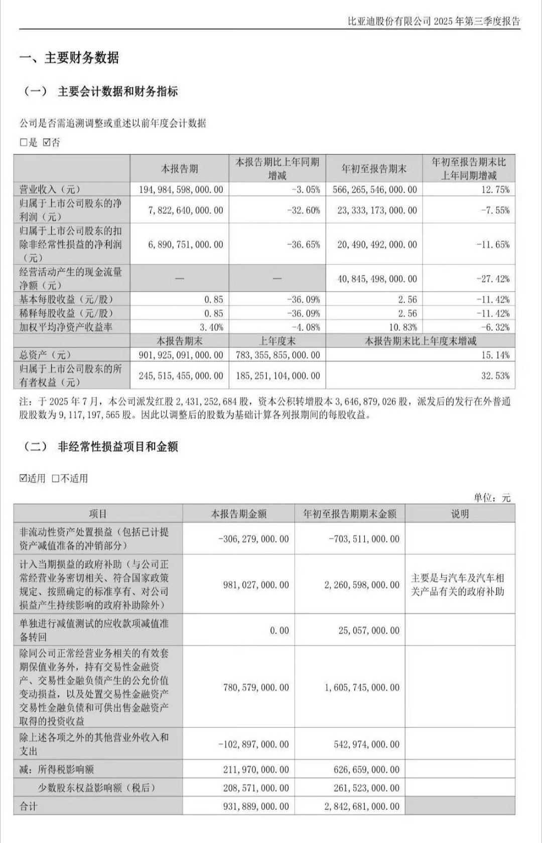 比亚迪三季度净利润78.23亿
