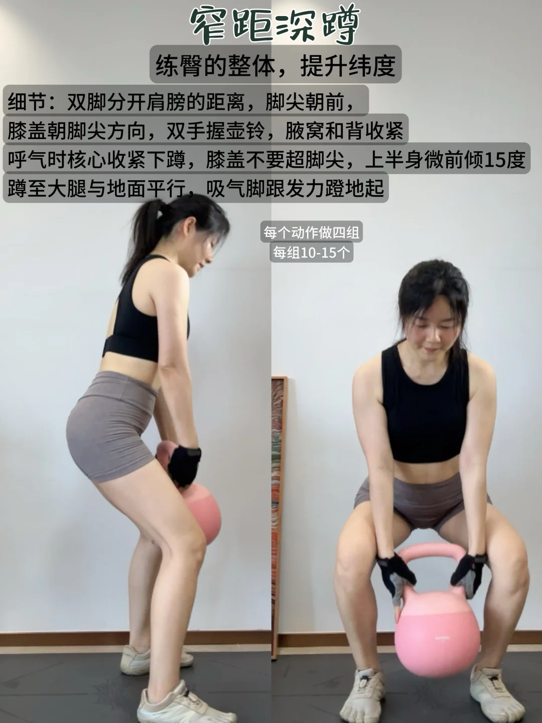 41岁,居家训练,死磕臀腿一年 有很多姐妹问:为什么我居家练都比她们在健身房明显! 我想说:在哪练不重要,练的动作也不用多,经典的蹲,拉,推就够了 ! 重要的是你每次的训练质量,每周的频率! 👉今天来給大家讲讲我的练臀计划 🌟一周保持两次臀腿训练,每次至少四组动作,每组动作尽量做4-5组! 🌟每次训练都要有足够的强度,例如一组动作很轻松做15个,那么你就得加重量,如何判断重量是否合适? 如果你做12个已经很吃力,咬牙能坚持15个那么就够了,不要躺在舒适区! 🌟肌肉的感受,意思是如果你要练深蹲,那么你就慢慢去感受臀大肌是否有被完全拉开,如果你腿的感受更明显,那么你就轻微调整姿势(比如上半身前后,膝盖前后移动)找到正确的感受再去加重量! 🌟单腿的训练没次都要加,特别是保加利亚分腿顿,前期可以退阶做箭步蹲,单腿训练强度大,能提升身体平衡能力和运动效率! 🌟臀腿训练核心经验总结:注重动作质量而非重量。深蹲、硬拉是基石,确保姿势正确。兼顾前后侧肌群平衡,渐进超负荷,逐步增加强度。训练前充分热身,训练后认真拉伸。感受肌肉发力,念动一致。坚持每周2次,给肌肉恢复时间。