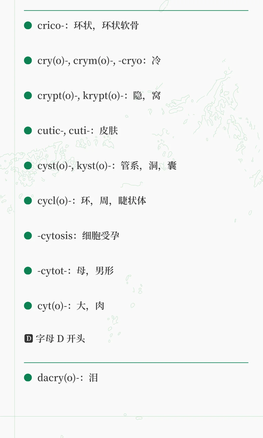 今日份分享学习关于常见的医学词汇前后缀 整理到了F 接下来继续整理 仅供参考学习 护理专业提升医学英语 RN/ISPN