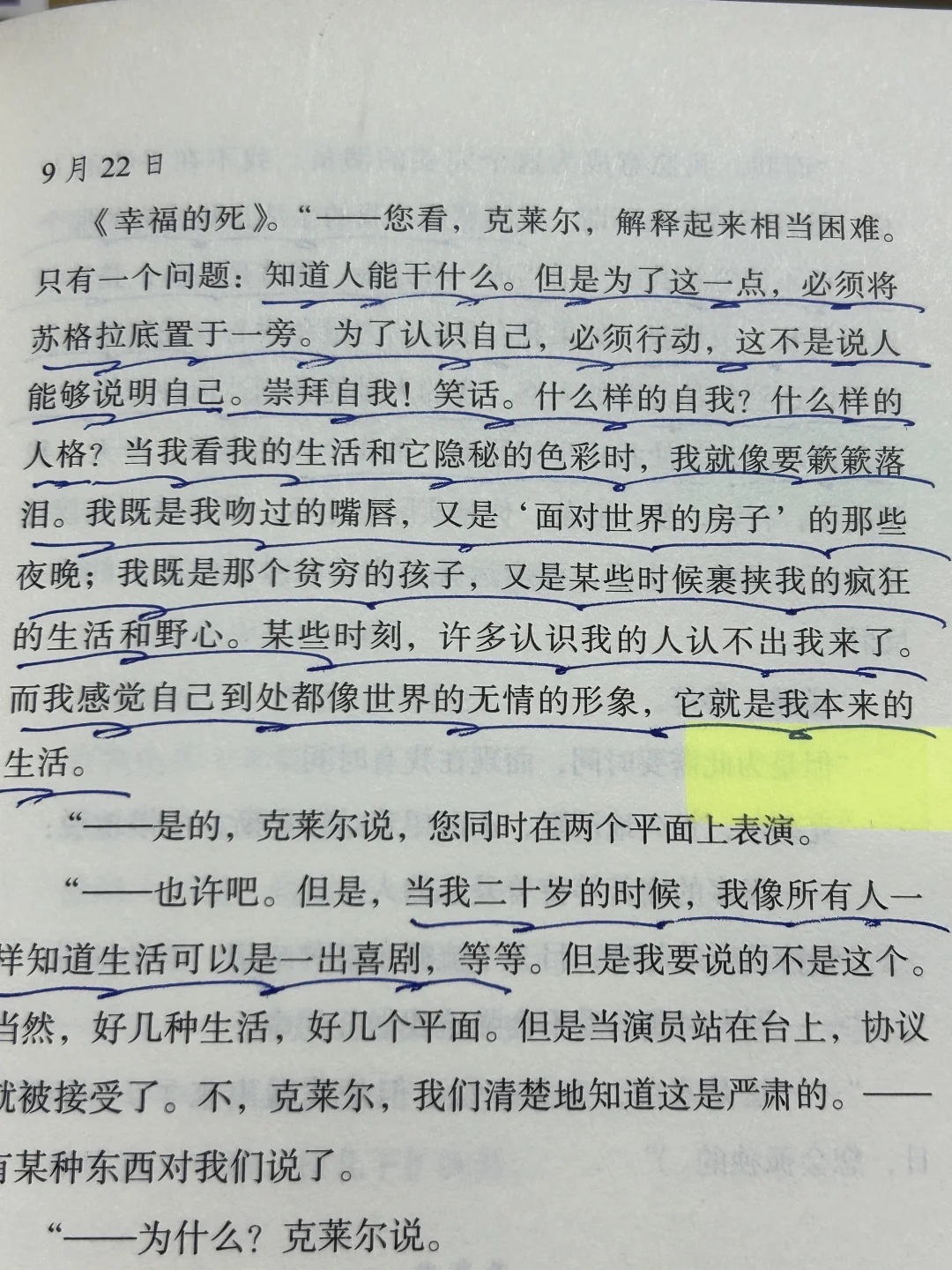 在笔记中,加缪说:“要写作,在表达上永远应该稍稍不及(与过相比)。反正勿饶舌。”真实的艺术品是说得少的作品。一个人写作时应该做到的“是学会自我控制”。这给我很大的启发。