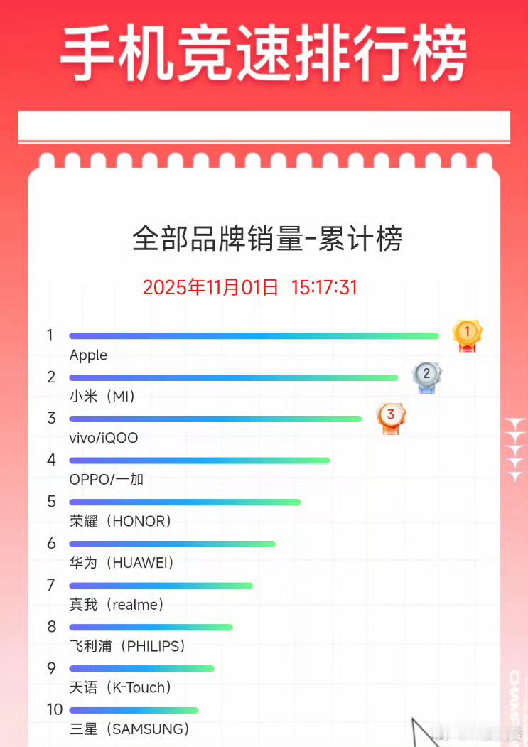 双十一半程苹果领跑小米紧随今年双十一高端战场,苹果还是强势领跑,但这次小米成
