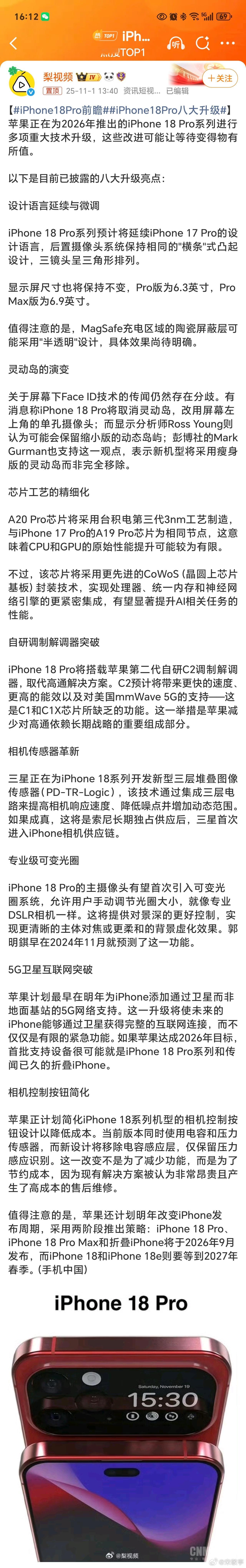 iPhone18Pro前瞻八大升级?真的升级这么多吗?建议想买iPhone17系列的用户直接等iPhone18吧[允悲]!