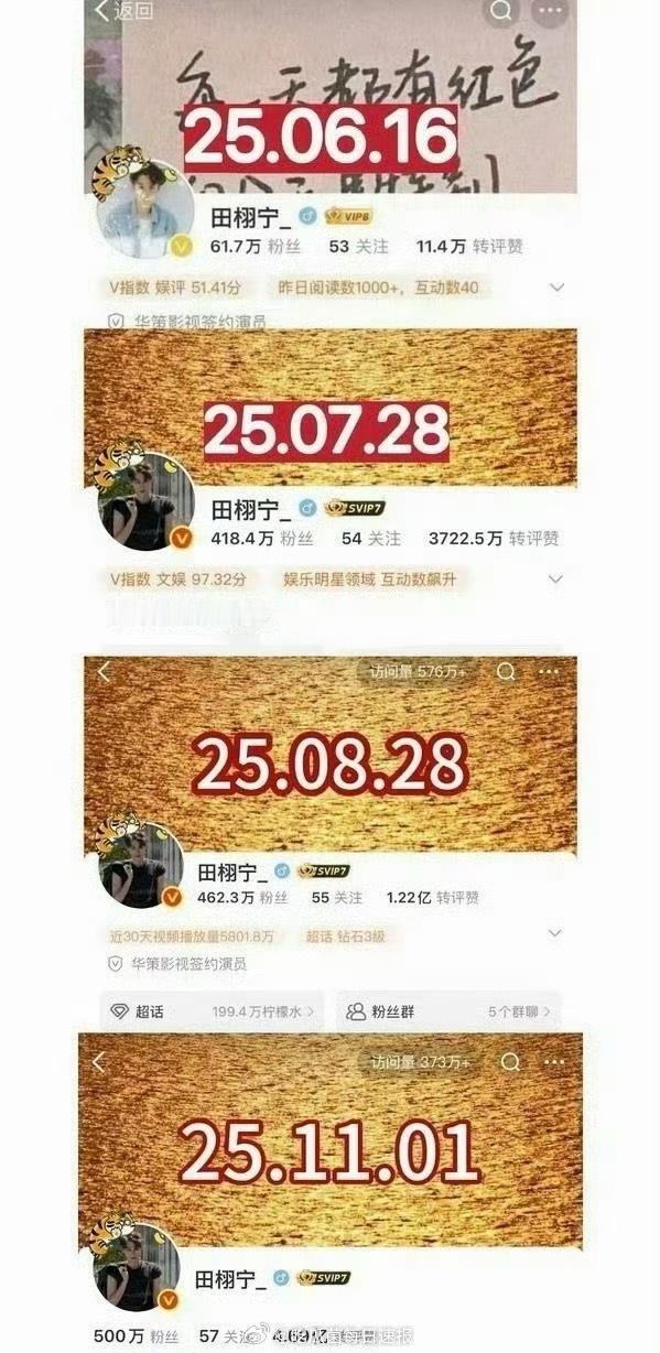 田栩宁微博粉丝四个月破500w,算不算2025紫薇星?