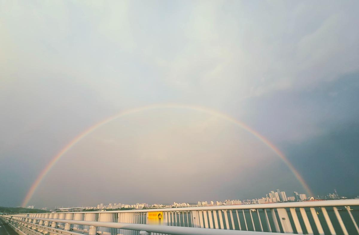 刚刚在首尔出现的超大型彩虹[彩虹屁][彩虹屁]
