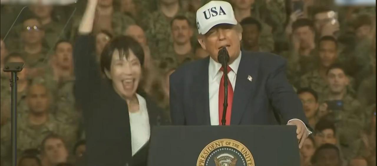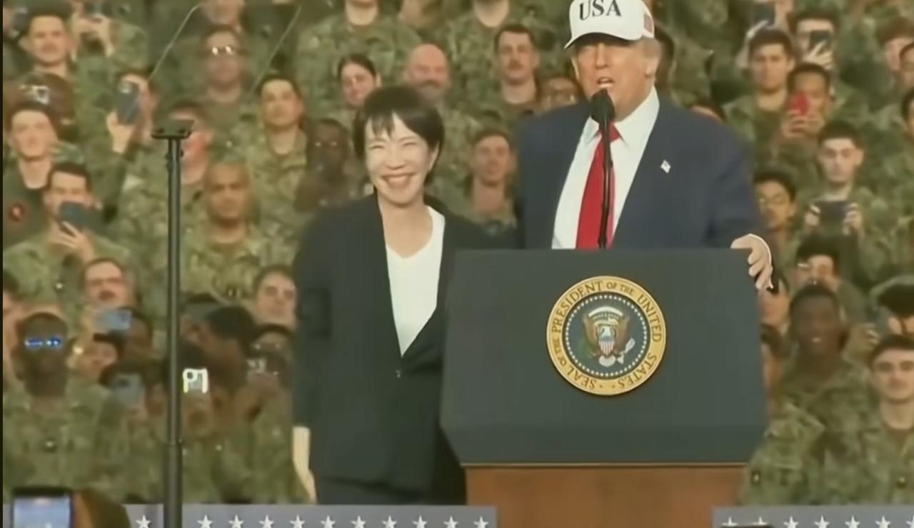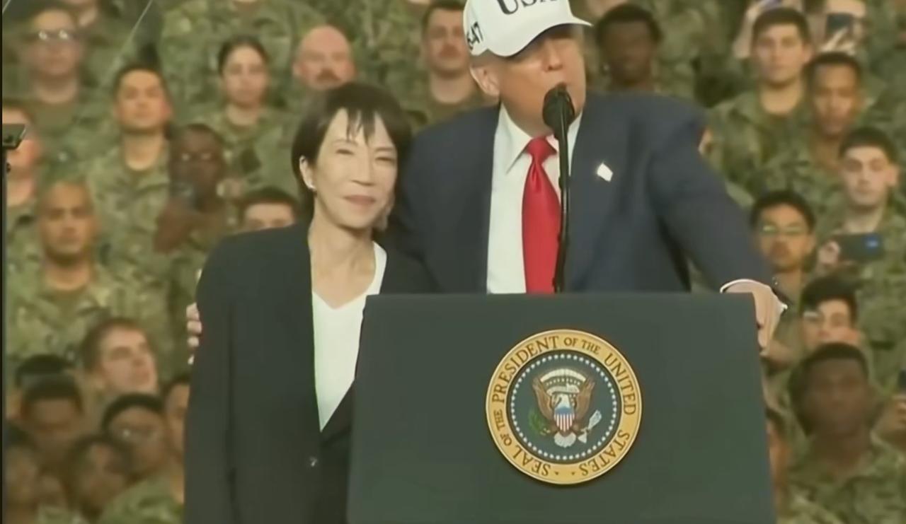 看这“拉丝”的眼神,我怎么有一种“绝经的她爱上了绝精的他”的既视感呢!不知道高市早苗老公高市拓看到这个画面,会不会把今年刚因为脑梗导致的偏瘫给治(chòng)好。无能的丈夫,跪舔的妻子,隔壁的霸道总裁,剩下的就不说了。 怎么说呢,错过了她的青春期,切不能错过她的更年期! 在共同前往横须贺美军基地时,特朗普破格允许高市早苗一同乘坐“海军陆战队一号”直升机。到了美军横须贺基地之后,当特朗普称赞高市为“赢家”和“日本史上首位女首相”时,她竟像追星少女般雀跃起来,围着特朗普转圈。这一反常举动被镜头捕捉,迅速在社交媒体上传播,引来了一众国际网友热评。 横须贺基地的海风吹过航母甲板,高市早苗站在特朗普身侧,她的微笑被镜头永久定格,终将成为日本外交史的尴尬注脚,再亲密无间的表象,也难以掩饰利益交换的冰冷实质,最后只会留下一堆笑料。