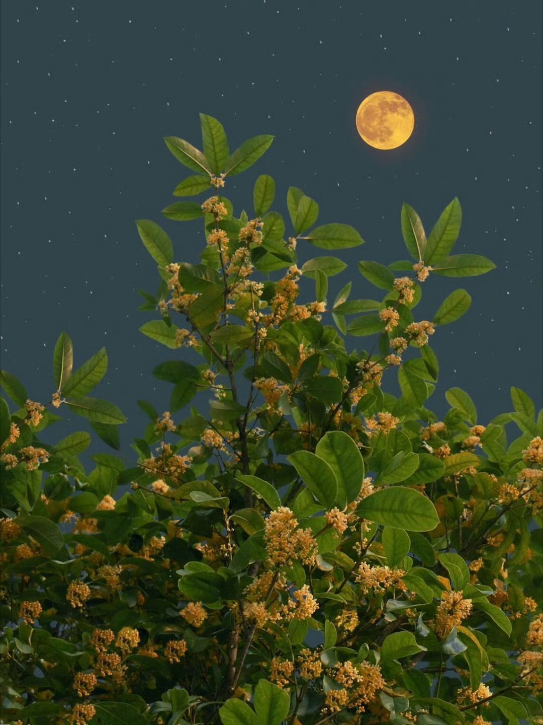 当月色撒向桂花枝头,我听见秋风在耳边低语。 [求关注][拜托][点赞]