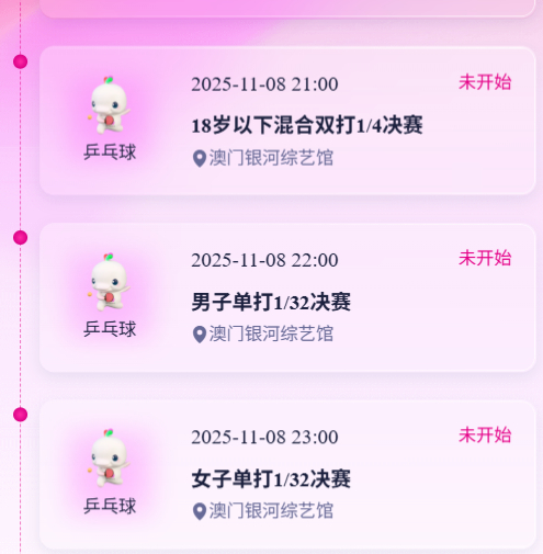 因为11月8日最后一场比赛女单1/32决赛预计 23点 开始(P1)