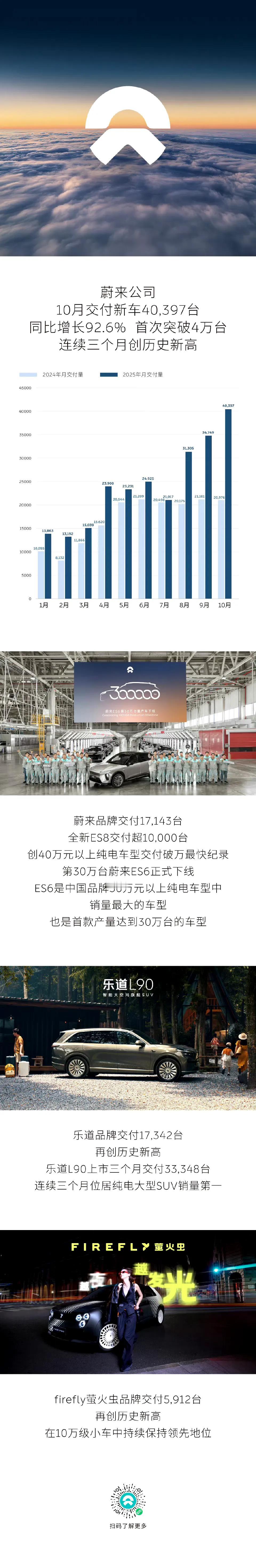10月的新势力交付成绩太炸裂了! 零跑居然破了7万,物美价廉始终是商品销售的王道!零跑从一个新势力小弟今天成长为交付量的大哥,始终坚持的就是闷声做事,走物美价廉的路子。 小鹏自从开窍以后,也是走上了康庄大道,虽然没有像零跑那样狂奔,但是也算是走上坦途。只是物美价廉的车型还是不够多,要不然定然能冲上去。 蔚来也要恭喜,自从出了乐道和萤火虫,路也是越走越宽,乐道和萤火虫三款车型占了本月交付量的一半以上,蔚来本品牌的主力销量车型也是5566,所以,唯有物美价廉才是消费者买单的最重要标准。 理想3万出头,也是唯一没有10万级车型的新势力了,虽然降价幅度很大,但是推出10万级别车型才是理想走出新天地的最终选择。