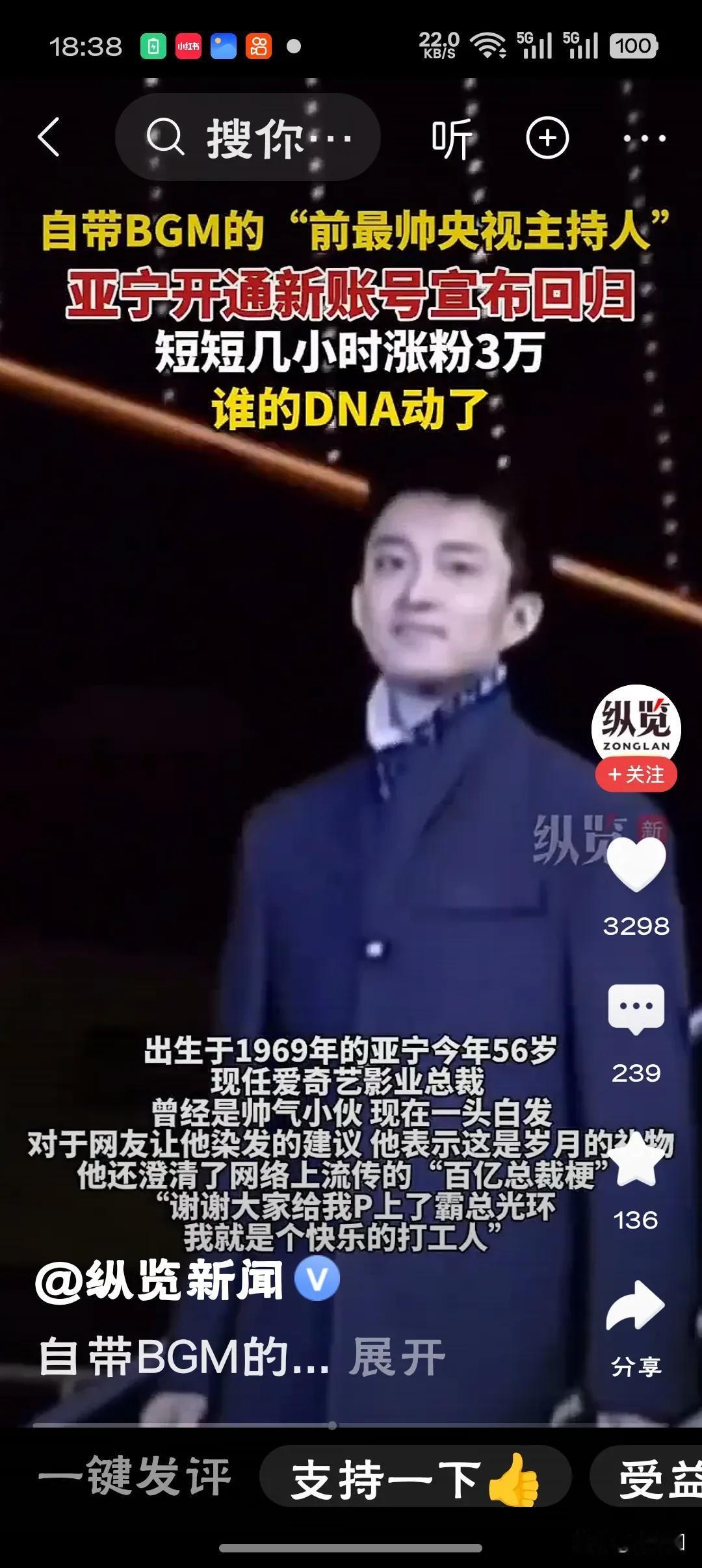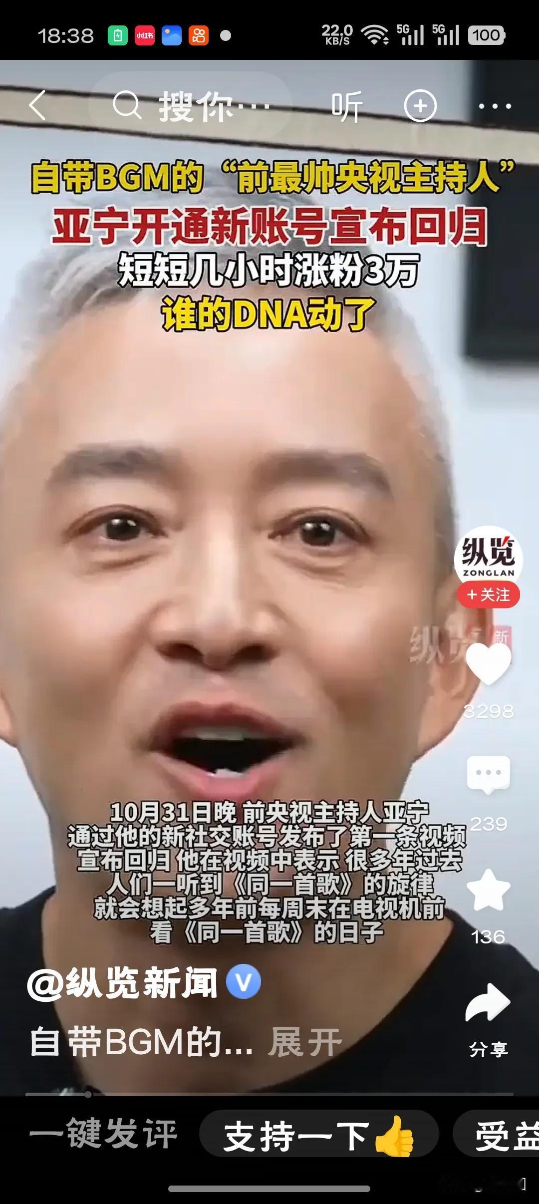 “前最帅央视主持人”复出岁月不改其俊朗,归来仍是主持界的“颜值担当”。