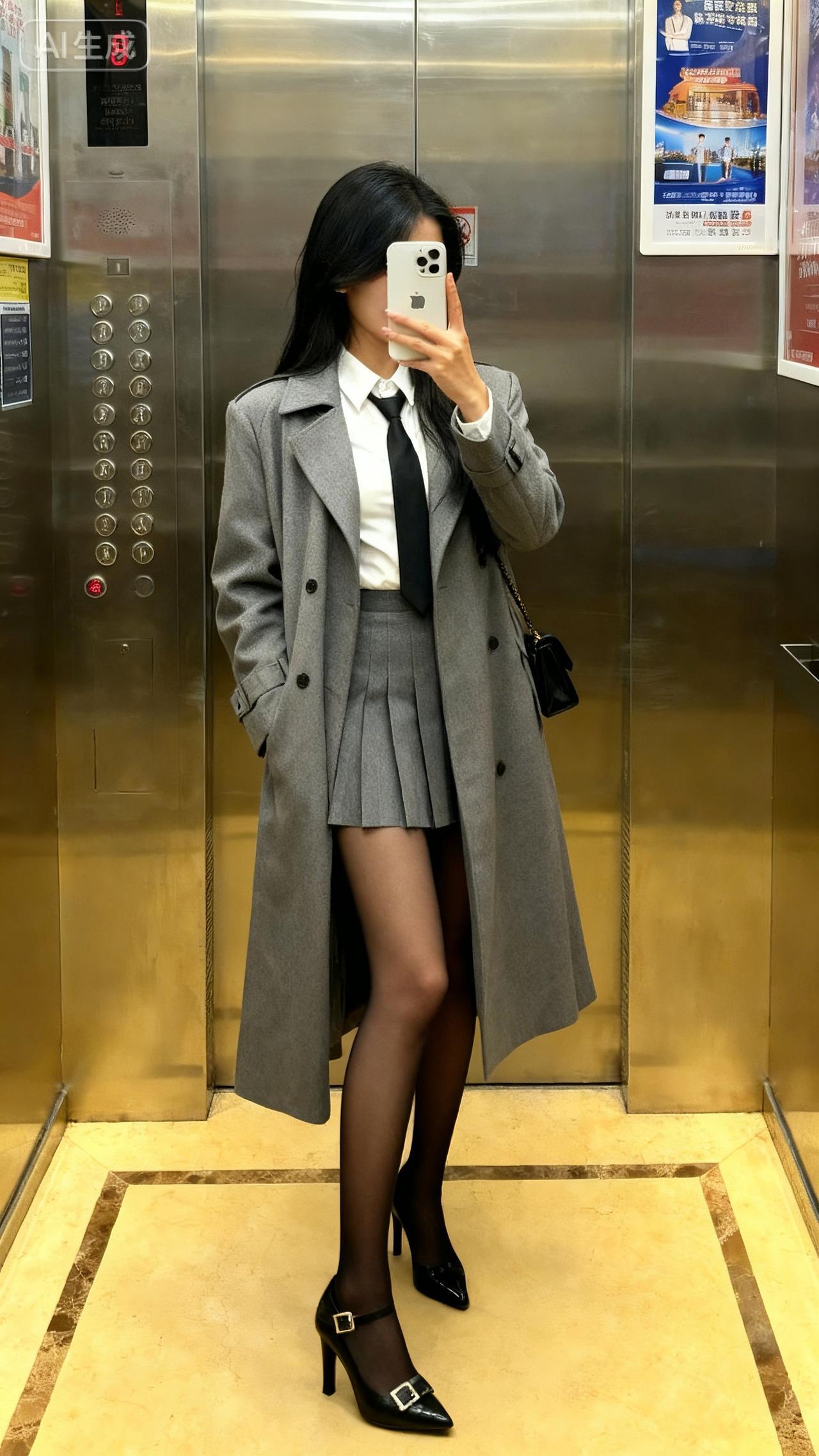 不要吐槽我。电梯拍照 保暖穿搭 冬季搭配 光腿神器