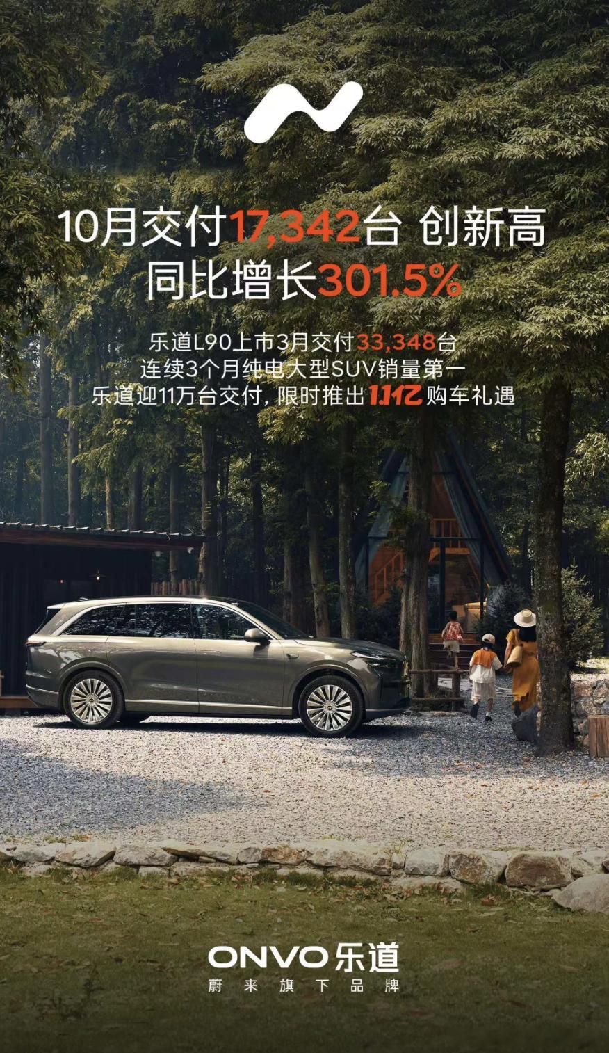 乐道10月交付17342台,L90上市3月交付33348台,乐道也算是用交付数据回应质疑了