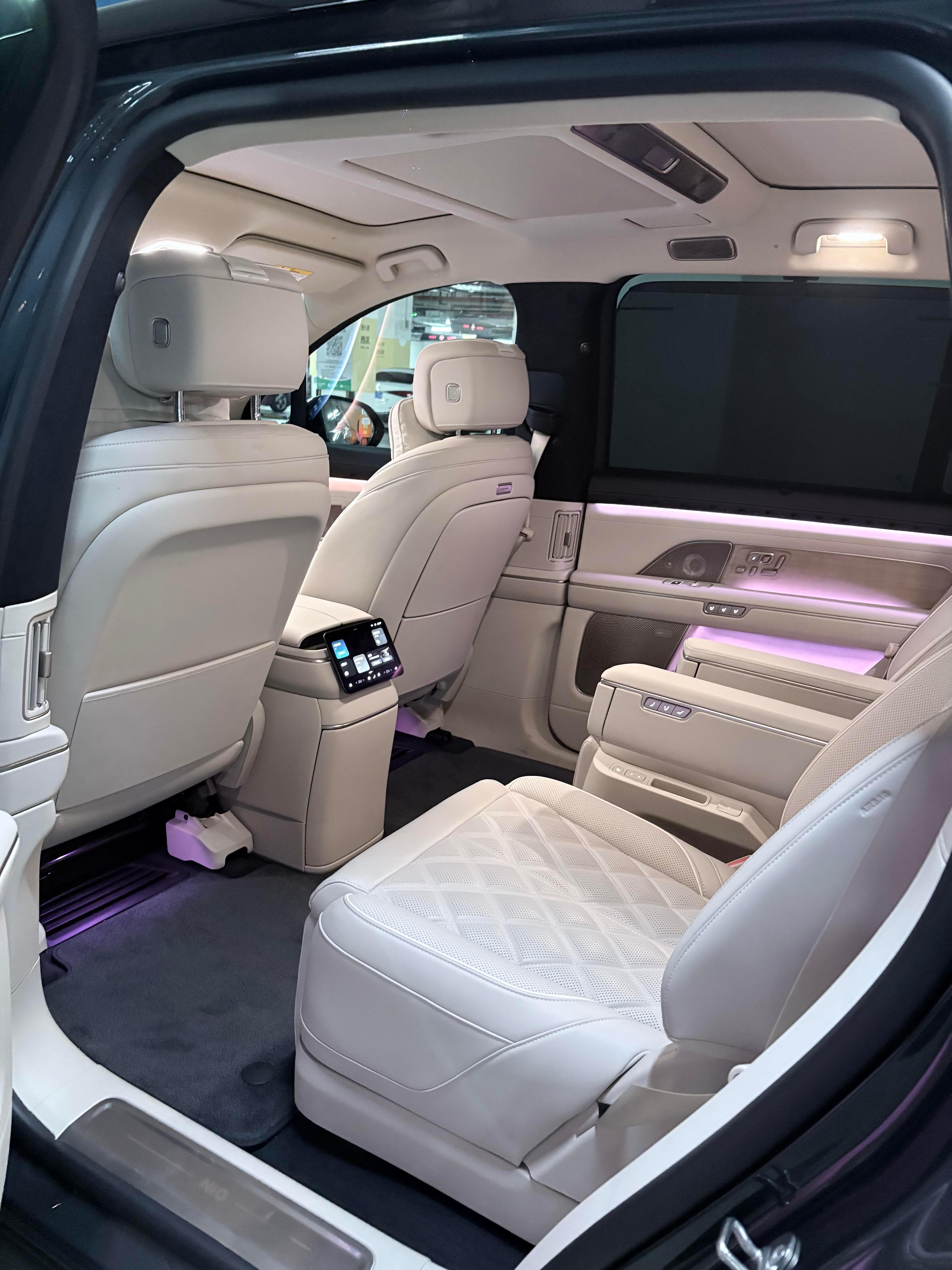 第三排完全不挤,175cm的朋友坐进去腿部还有余量,再也不用上演“谁坐第三排”的家庭博弈~ 全车52平米软包覆,指尖摸得到的地方都是细腻皮质,加上1600万色氛围灯,座舱质感直接拉满。