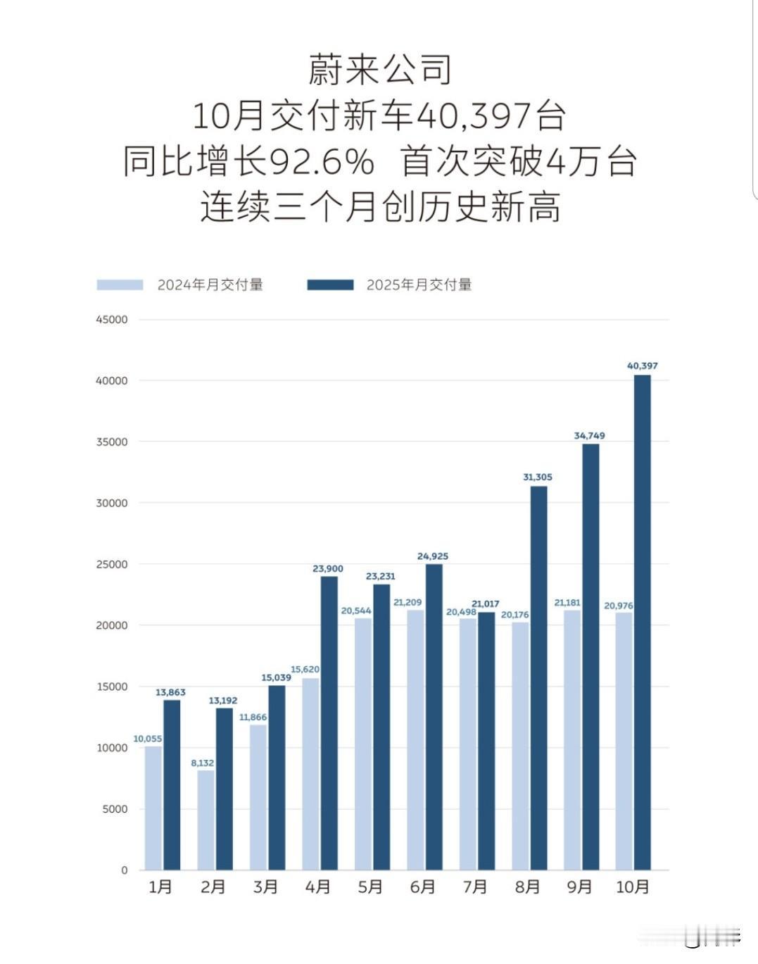蔚来10月交付超40000台,正被越来越多用户所接受。期待ES9。