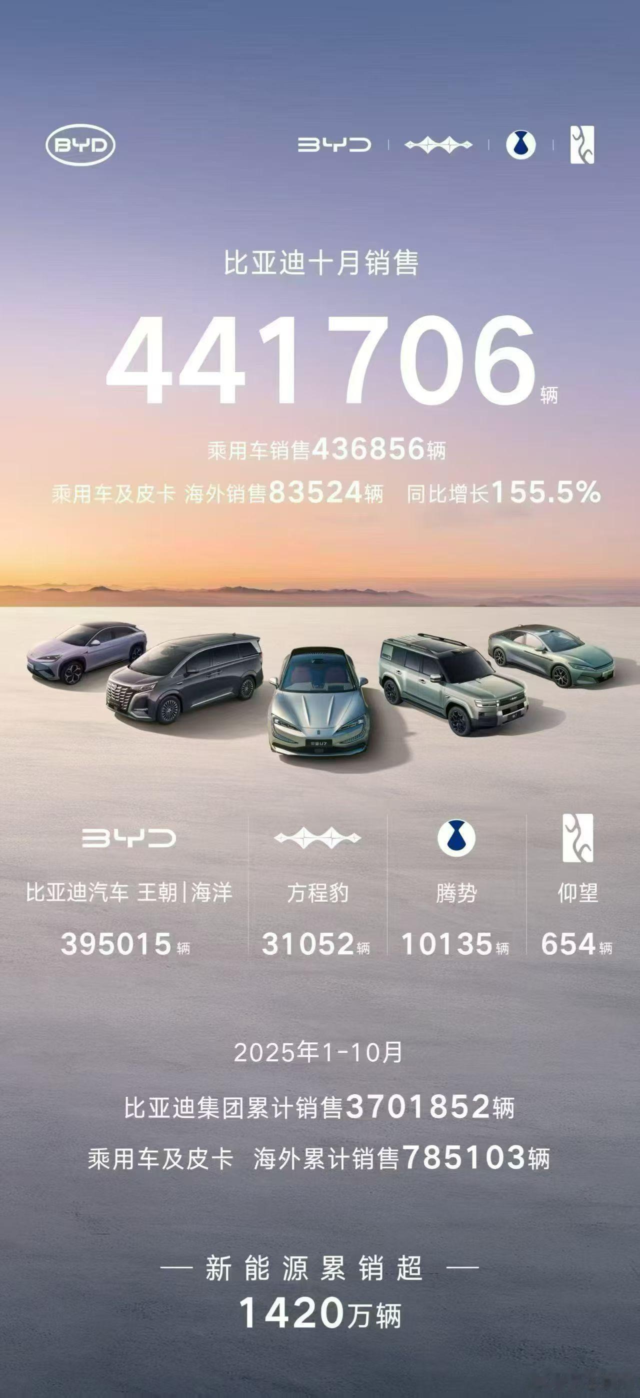 比亚迪10月销量创年内新高,销售441706辆