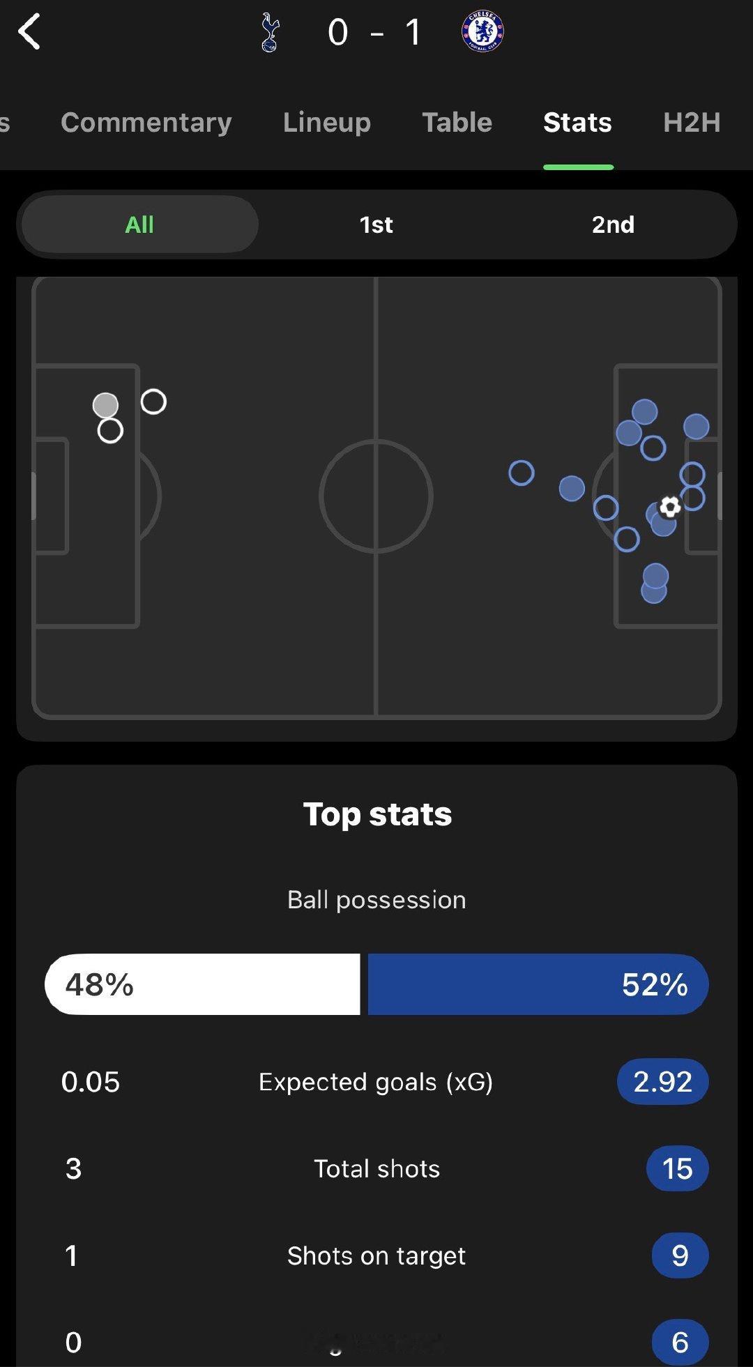 [摊手]本场比赛总共3脚射门,xG为0.05——2012-13赛季以来各项赛事最低xG纪录。
