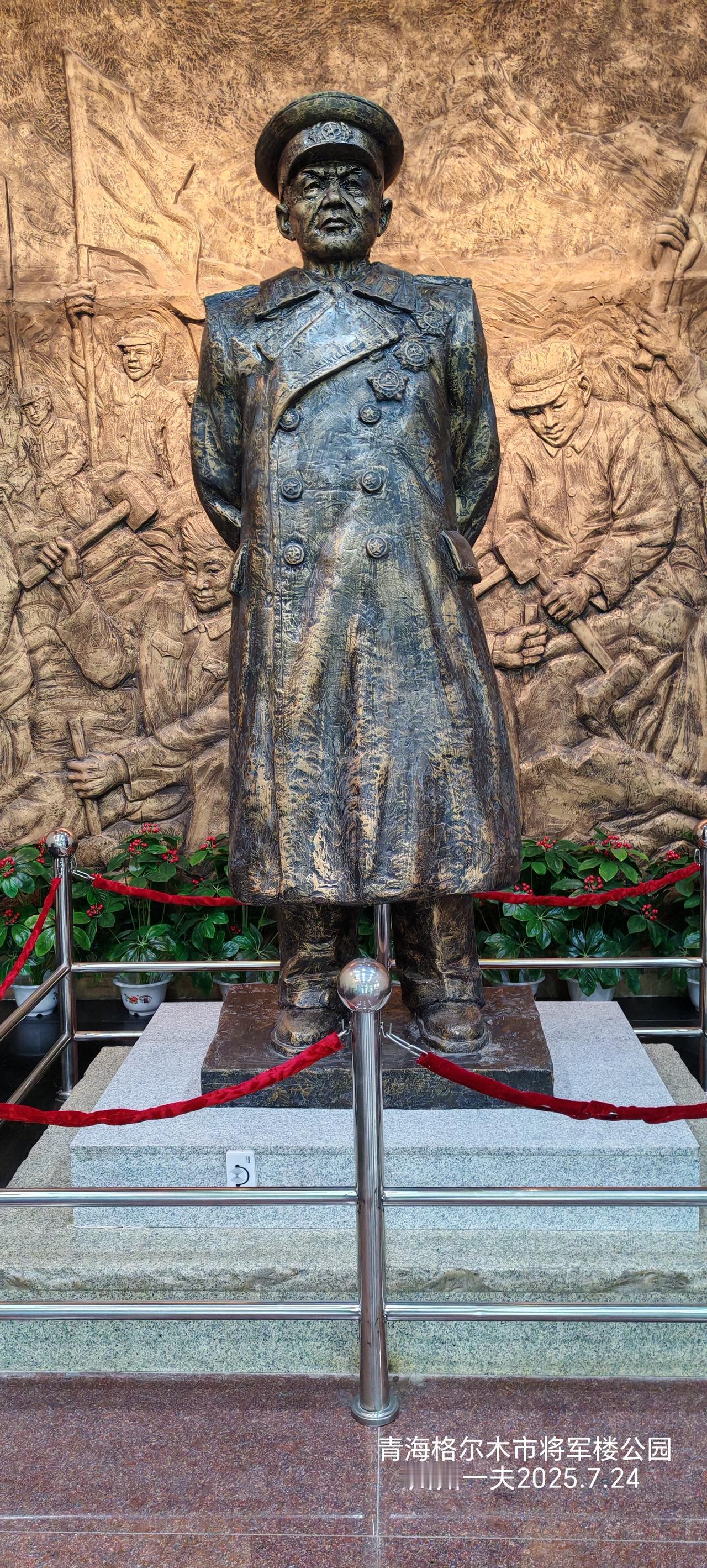格尔木的将军楼公园是以青藏公路建设历史为主题的文化公园。 上世纪50年代,慕生忠将军和他率领的筑路大军,仅用了七个月零四天,在平均海拔4000米的“世界屋脊”,用生命和鲜血铺筑了总长1347公里的青藏公路。 公园有青藏公路修筑时期的将军楼原址、青藏公路纪念馆、天路纪念塔等建筑群。通过实物展陈与雕塑艺术再现筑路大军开拓“天路”的感人事迹。 我到将军楼公园时,将军楼正在修缮,未能进去参观。