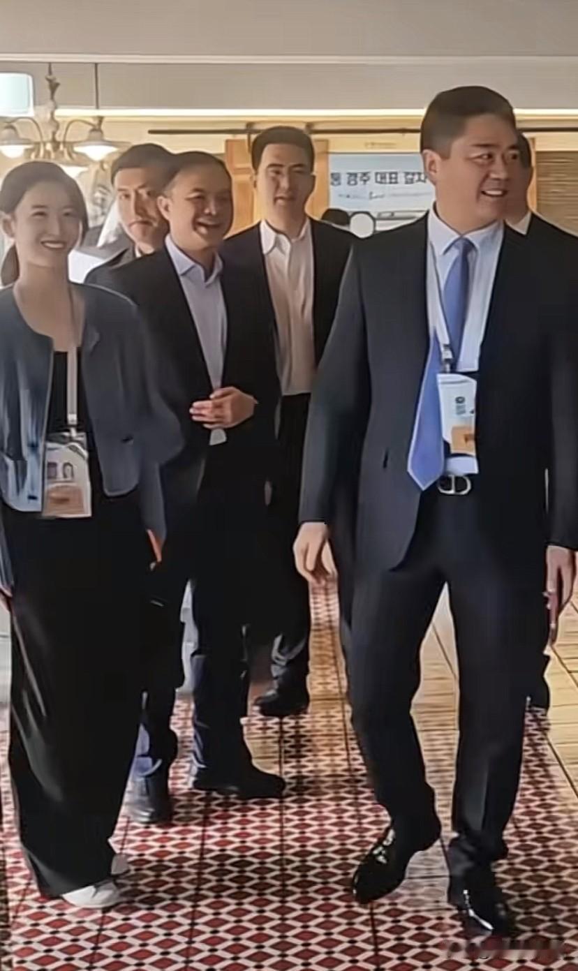 这几天刘强东章泽天在韩国参加活动,被拍到章泽天走在前面,刘强东则充当助理角色,不过在新的跟韩国接见人吃饭的视频中可以看到,刘强东和章泽天一起进餐厅,只是刘强东走在前面先握手,章泽天后走上去握手,这次章泽天很低调,穿着朴素甚至没戴首饰,扎了一个马尾,一件蓝色短款条纹上衣,黑色阔腿裤配一双平底小白鞋,这个造型跟在会场的造型风格完全不同,刘强东跟一行人走在前面,章泽天低头默默跟在后面,跟之前的女王造型形成鲜明对比。