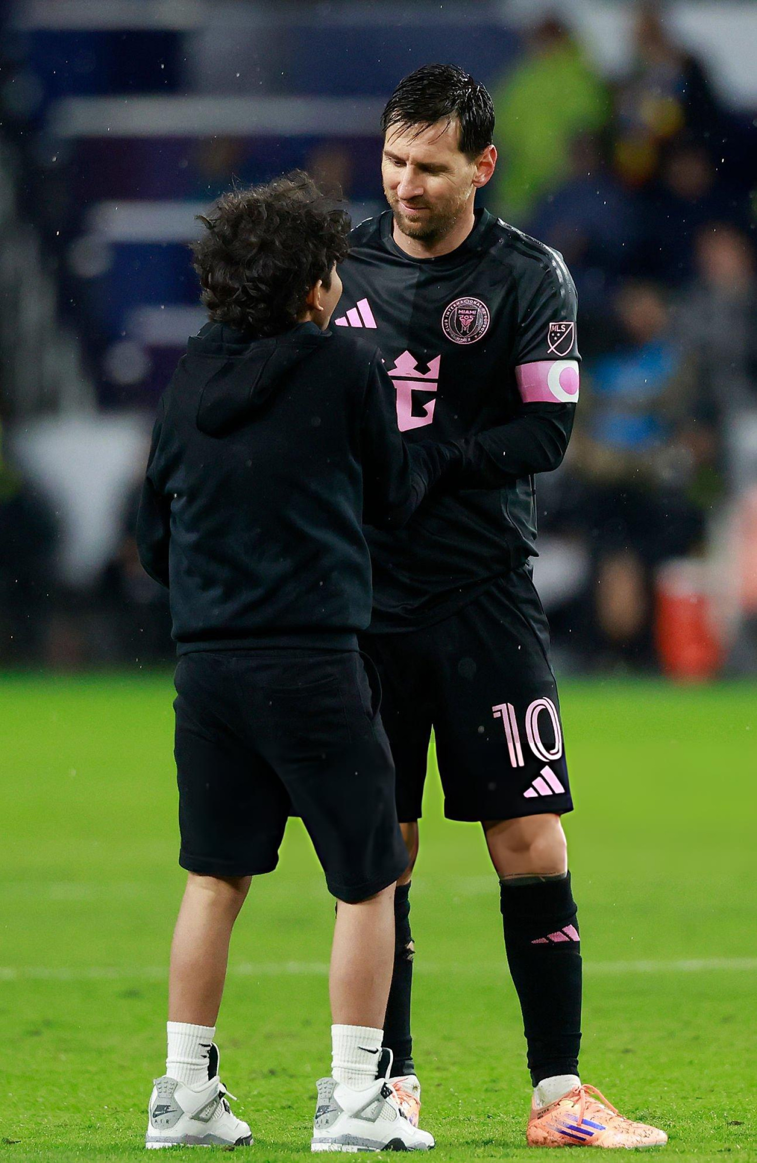 梅西与冲进球场的小球迷!纳什维尔vs迈阿密国际迈阿密国际[超话]梅西[超话]
