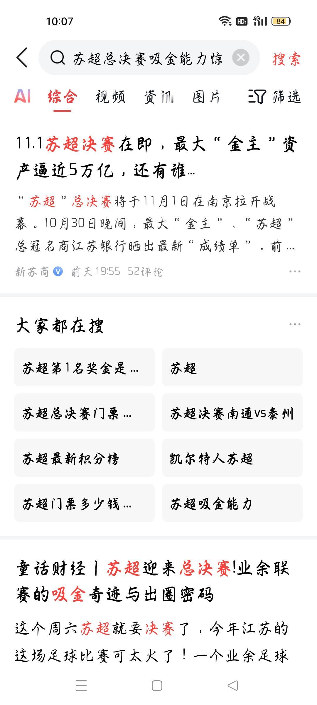 最大金主资产逼近5万亿,我想说 据新苏商报道,苏超总决赛于11月1日拉开战幕,10月30日,最大"金主"一“苏超"总冠名商江苏银行晒出最新"成绩单”,总资产通近5万亿,江苏银行投入800万,有人说收获了8亿,个人认为,银行创收也要创新,金触与体育有机融合,由于要使用江苏银行手机App,要买票,要销售,要消费,银行的钱要动起来,才有效益。毫无疑问江苏银行的决策者抓住了机会,四两拨千斤,既有名,又有利。江苏银行是苏超最大的获益者。各位条友觉得呢?