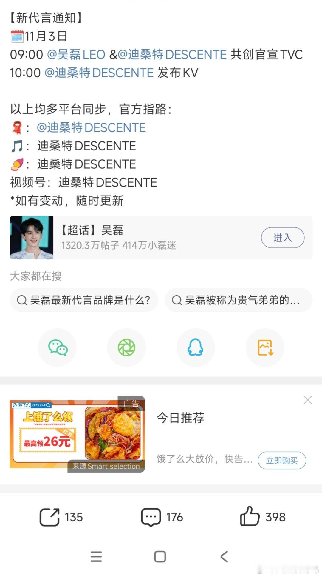 我去,吴磊两天两个新代言啊