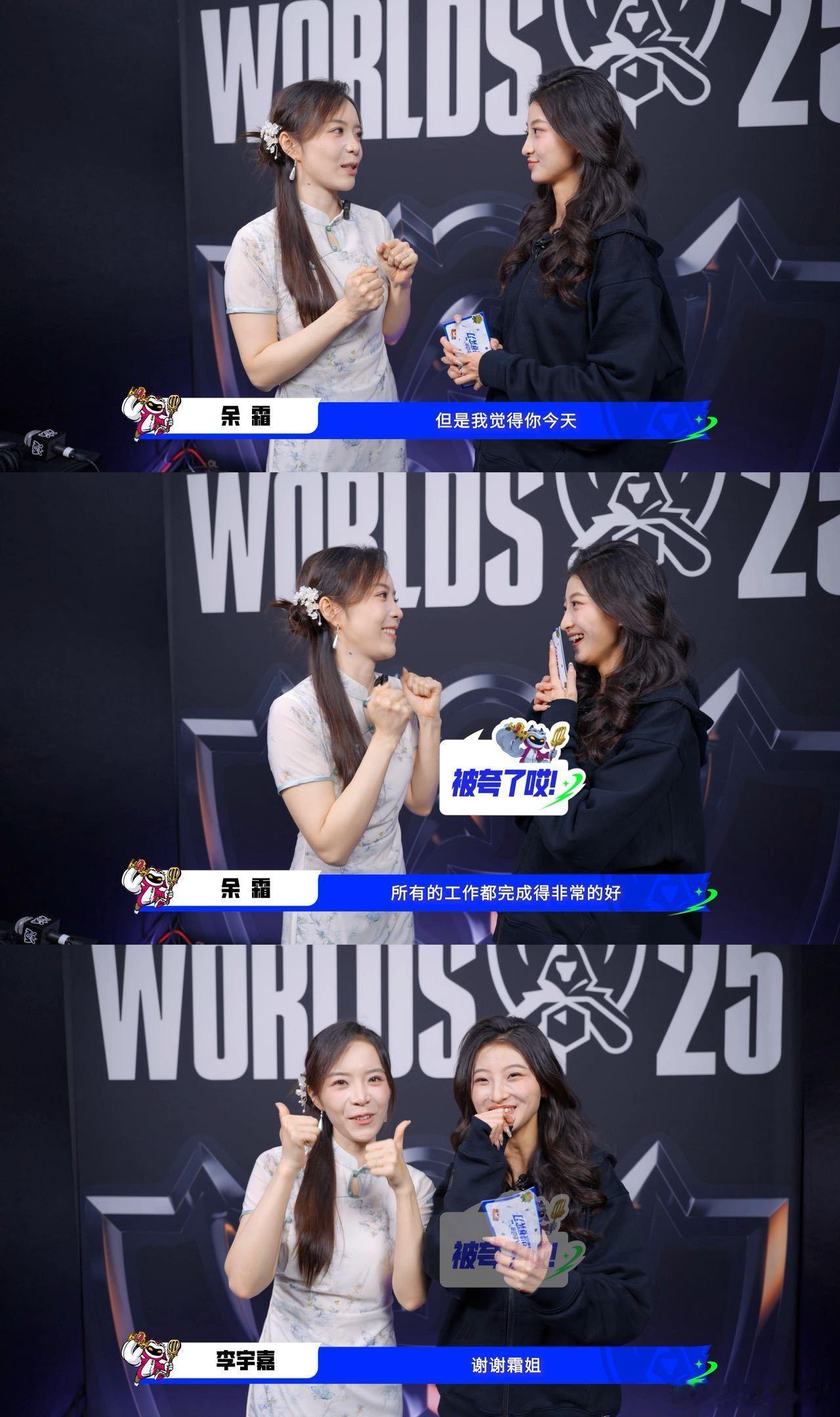 李宇嘉余霜中传师姐妹的专业魅力 谁没被余霜和李宇嘉的专业魅力圈粉?余霜传授经验时条理清晰,李宇嘉上台实践时自信满满,采访LPL选手的环节里,两人的专业感和默契度直接拉满,这种“前辈引路、后辈发光”的师姐妹互动,真的太有感染力了!