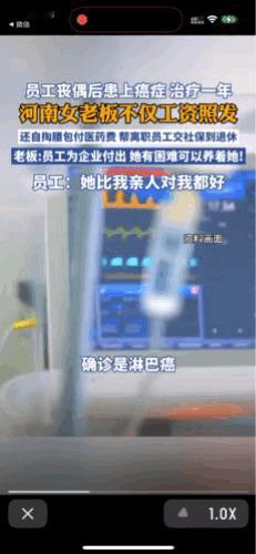 "苦命的员工遇到大爱的老板” 你尽管去治病,工资一分不扣 河南郑州,员工冯女士是一位单亲的妈妈,她的丈夫已经去世。 在没有丈夫的日子里,她一个人风里来雨里去,起早贪黑地做事。她希望把孩子养大,给孩子一个家 可是福不双至,祸不单行。去年她经常感觉身体的各种不舒服。经常性发热,喝点药又好了。她忙着工作,又觉得问题不大,一直没有到医院去做检查。 后来她的身体状况越来越差,经常性地力不从心,稍微做点事就出汗,体重下降很快。 感觉这么拖着肯定不行,她跟老板请假,说她要去医院看病。 医院的医生一检查发现,冯女士腋窝下有几个淋巴明显肿痛,最后确诊为淋巴癌。 得知情况的老板贺女士,立马安排她住院治疗,还对她说你尽管治病,治病期间工资待遇照发。 说到做到一年了,贺女士一直在给冯女士发工资。还自掏腰包给付了部分医药费。 贺老板说:员工为企业付出,员工有困难了,不能一推了之。做企业要有良心,对员工负责,员工也会对企业尽力。 冯女士说:老板比亲人对我都好。 这样的老板大家遇到过吗?期待我们生活的时代里多一些温暖和美好吧! 取材网络,侵删