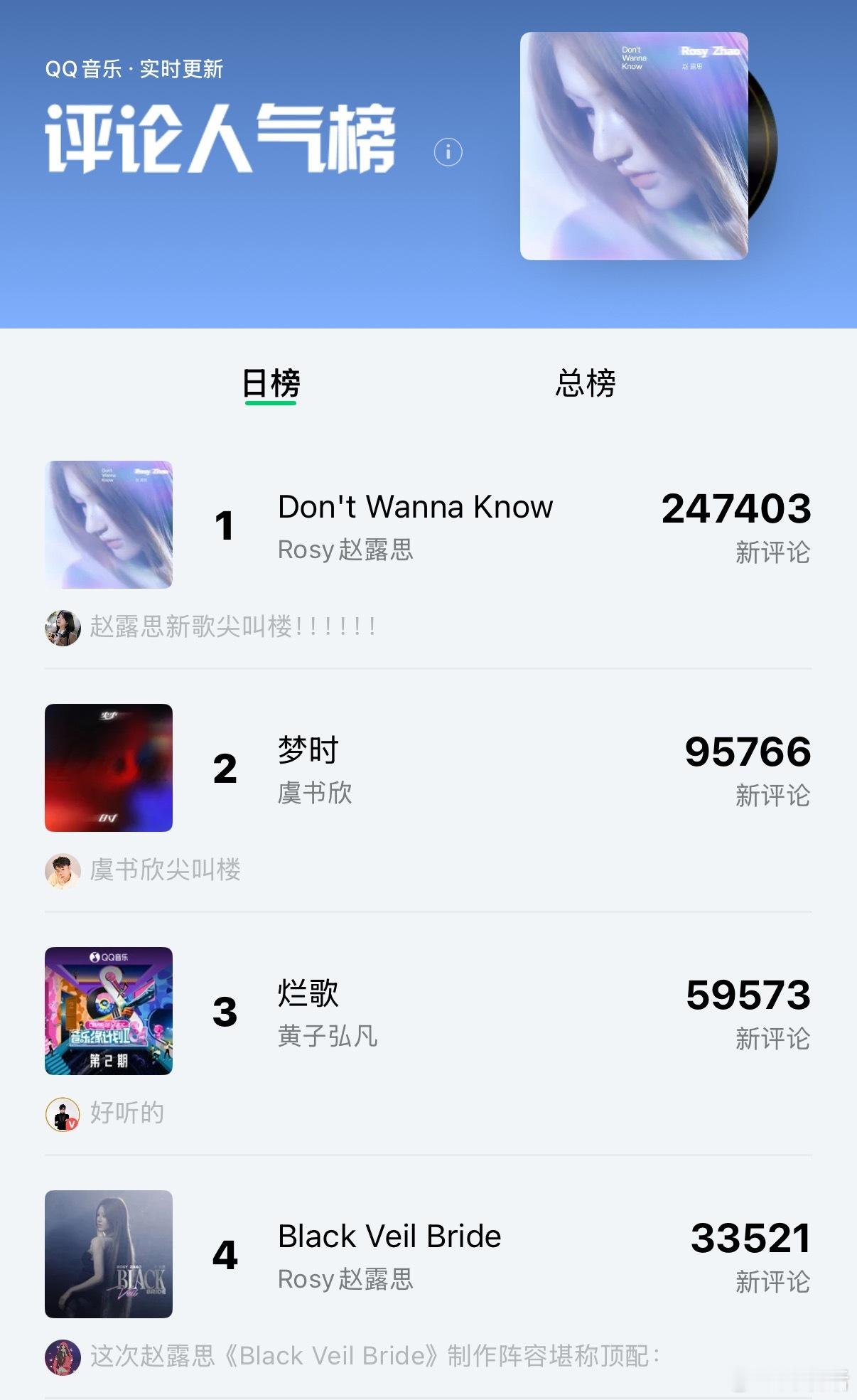 赵露思 虞书欣新歌成绩🈶你听了哪首?