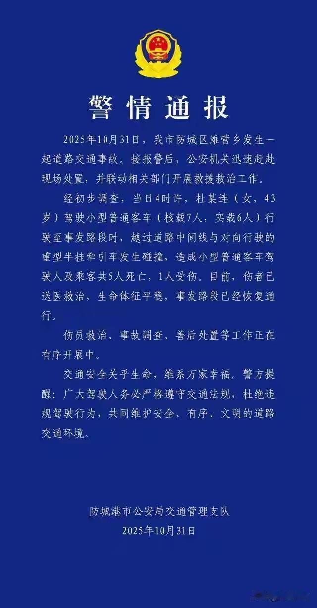 凌晨四点,驾车最危险的时刻,疲劳驾驶,灯光下,眼睛受刺激很长时间,能窜上对向车道,大概率就是疲劳驾驶。 对向是大车,受伤的一定是小车,乘坐七人实坐六人,五死一伤,包括这位女司机。 追尾刮蹭,不至于出这么大的事,两辆车高速行驶迎面相撞,那场面相当惨烈。