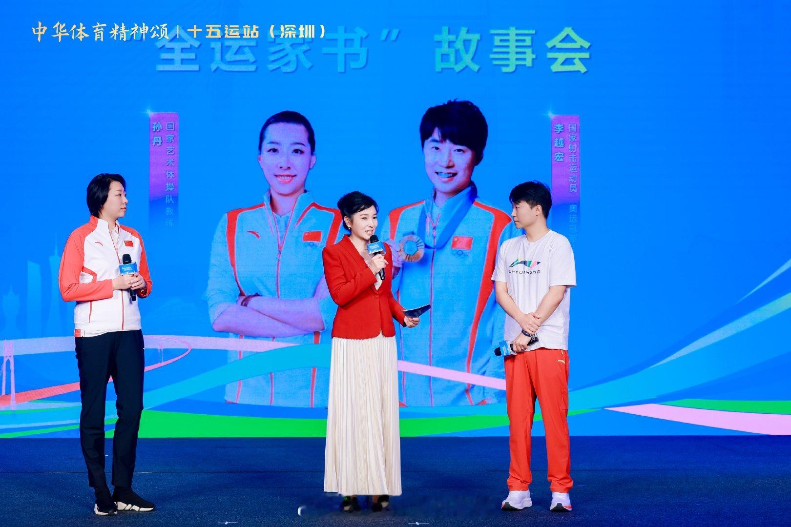 中华体育精神颂十五运站 中华体育精神颂十五运站宣讲活动中,国家队射击运动员、奥运冠军李越宏、国家艺术体操队教练孙丹现场参与活动,与小朋友们一同感受体育力量,传承新时代的中国精神!大屏幕上出现了我们喜爱的运动员孙颖莎和盛李豪 全运日记