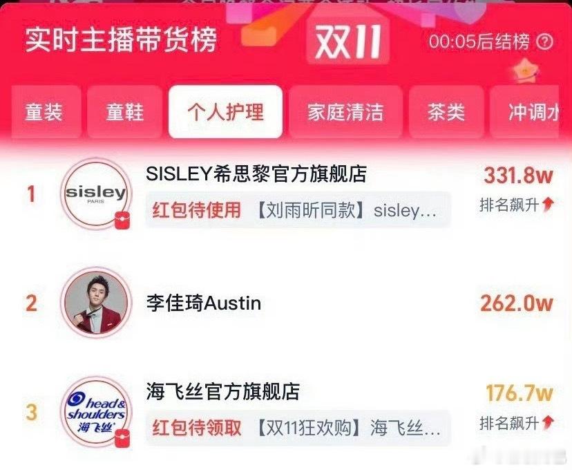 刘雨昕希思黎直播飙升带货榜第一[点赞] 这还是双十一期间,刘姐的顶级号召力🔥