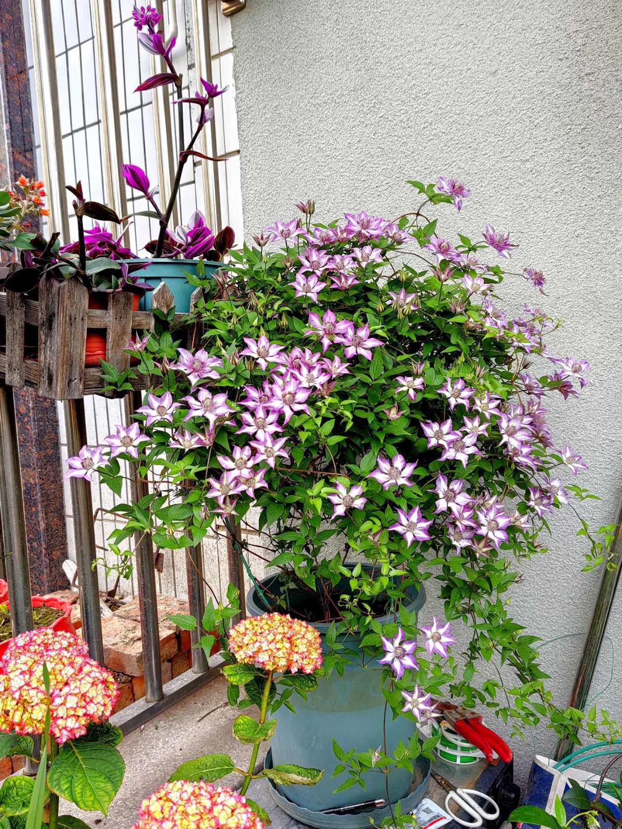 台友们有没有发现,刚网购的铁线莲看着精神,养几天就可能被病虫害盯上? 不用慌,咱先揪出最常见的 “捣蛋鬼”,一个个收拾! 首先是虫害里的 “老熟人”—— 红蜘蛛! 这玩意儿就爱高温干燥的环境,阳台要是闷得慌、叶子老干巴巴的,它准来爬叶背。 预防特简单:多开窗通风,每天早晚往叶片背面喷点水,湿度上来了,红蜘蛛就不敢作妖。 要是已经看见叶背有小红点、叶子发脆,别犹豫,赶紧用阿维哒螨灵,按说明稀释后重点喷叶背,连喷两次,间隔 3 天,基本就能把它清干净。 再说说病害里的 “俩难缠户”—— 白粉病和立枯病。 白粉病就是叶子上蒙了层 “白霉”,一擦还掉。 立枯病更狠,茎秆会变褐腐烂,严重的整株都蔫。 对付它们,“预防比治省事多了”! 春天下完雨、梅雨季潮湿时,赶紧喷次多菌灵或甲基托布津,一周一次,连喷两周,把病菌堵在门外。 要是已经发病,先把病叶、病枝剪了,然后换用醚菌酯喷,喷的时候叶子正反面、茎秆都要顾及到,很快就能控制住。 注意: 1.剪下来的病叶、病枝别扔花盆里,容易传染! 2.打药别选大太阳天,傍晚喷最好,不然容易烧叶。 只要盯紧通风和湿度,铁线莲就能安安稳稳长藤开花。