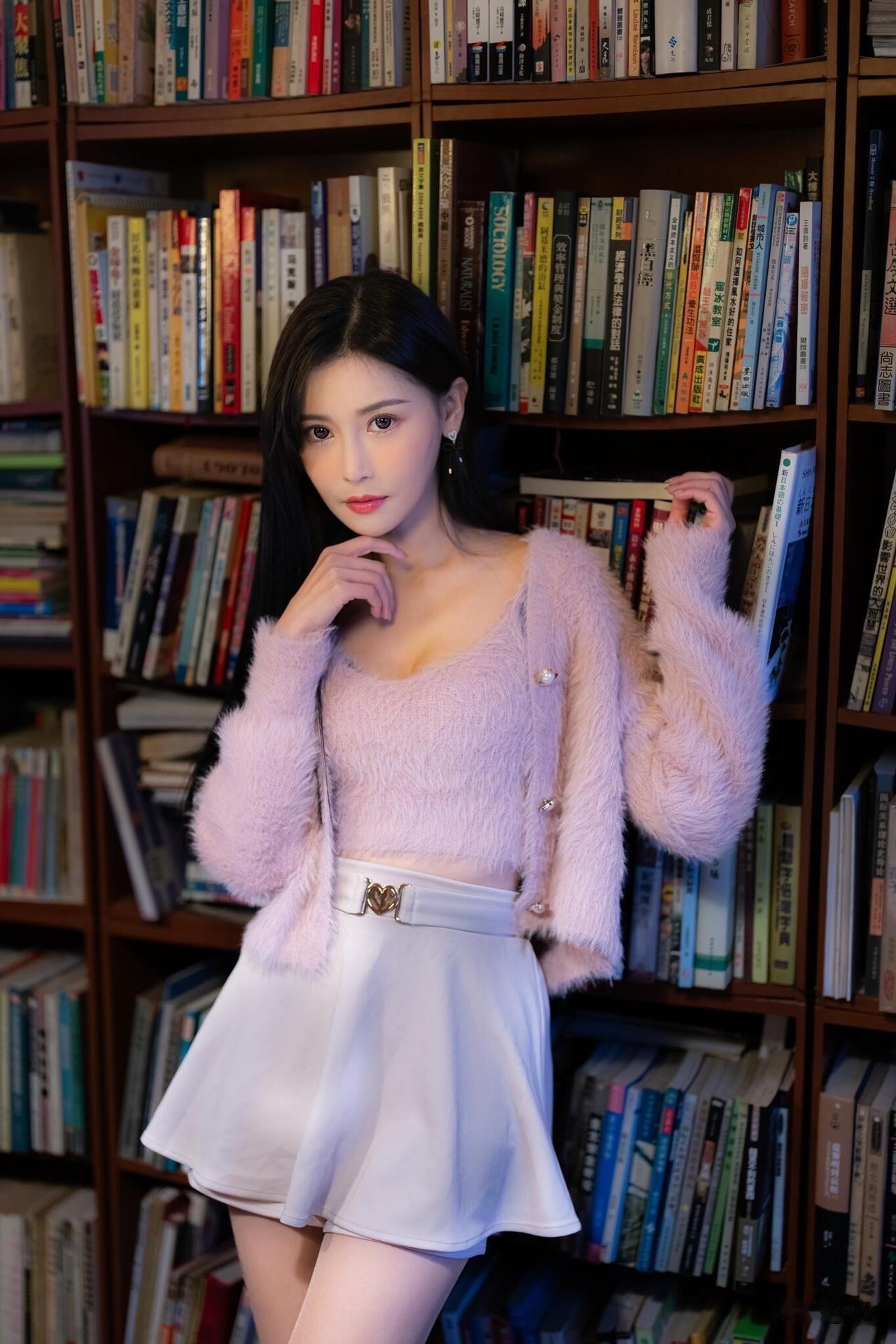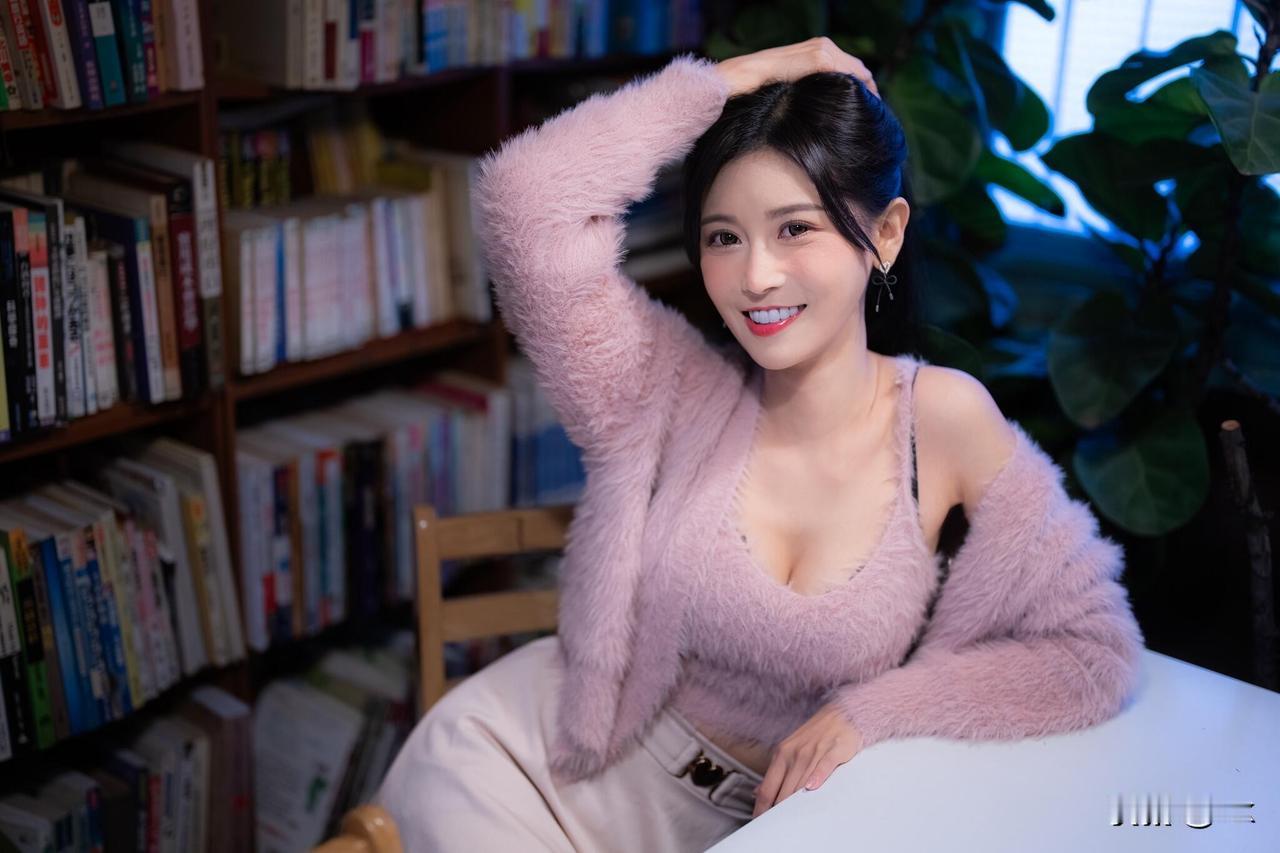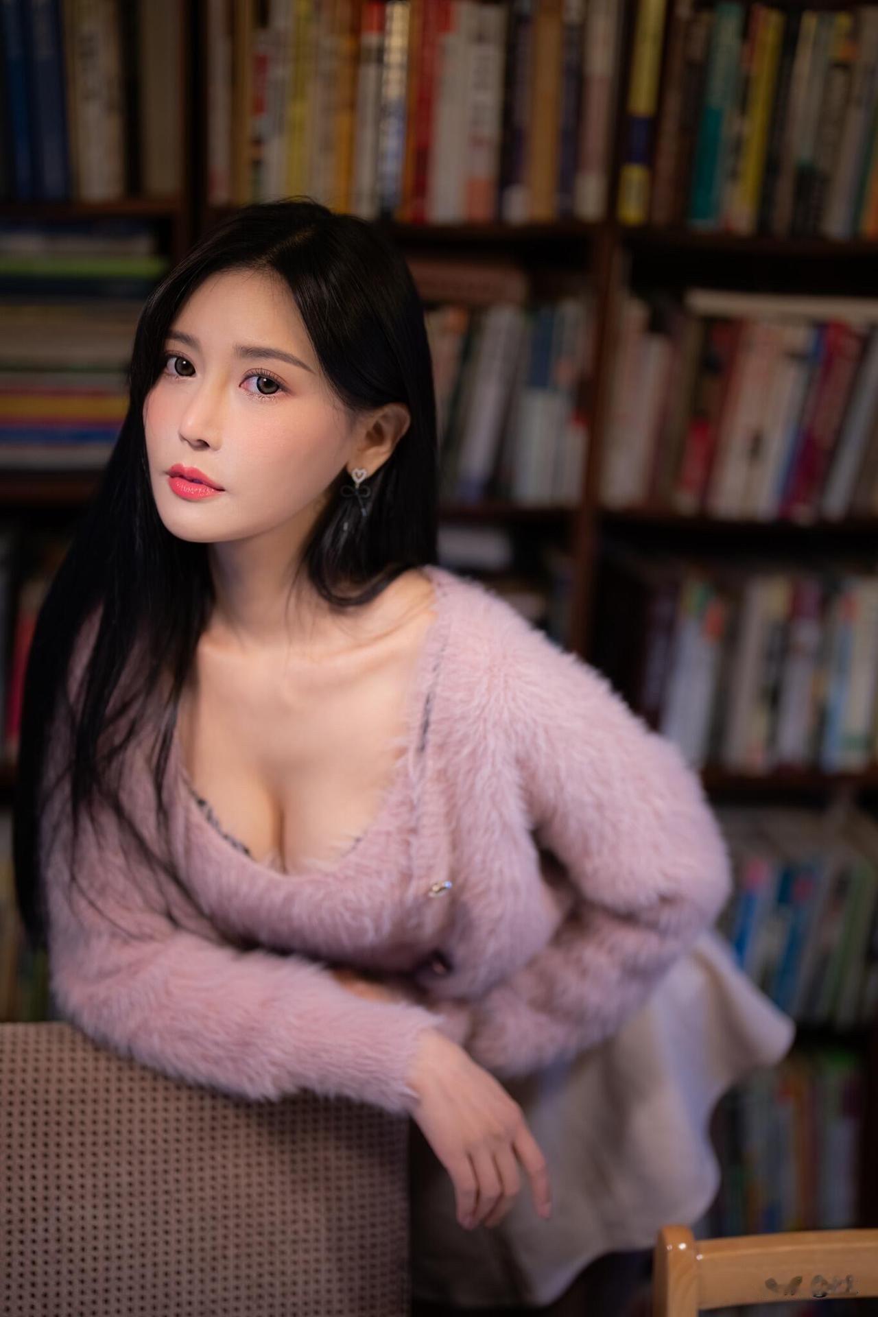 宝子们!今天穿的这件粉色毛绒开衫也太绝了~软软糯糯的质感,V领设计还能小露锁骨,温柔又带点小性感,和满墙的书搭在一起,文艺感直接拉满~ 坐在书架前拍照,暖光灯一打,感觉自己像从漫画里走出来的女主~你们喜欢这种温柔又纯欲的风格吗?