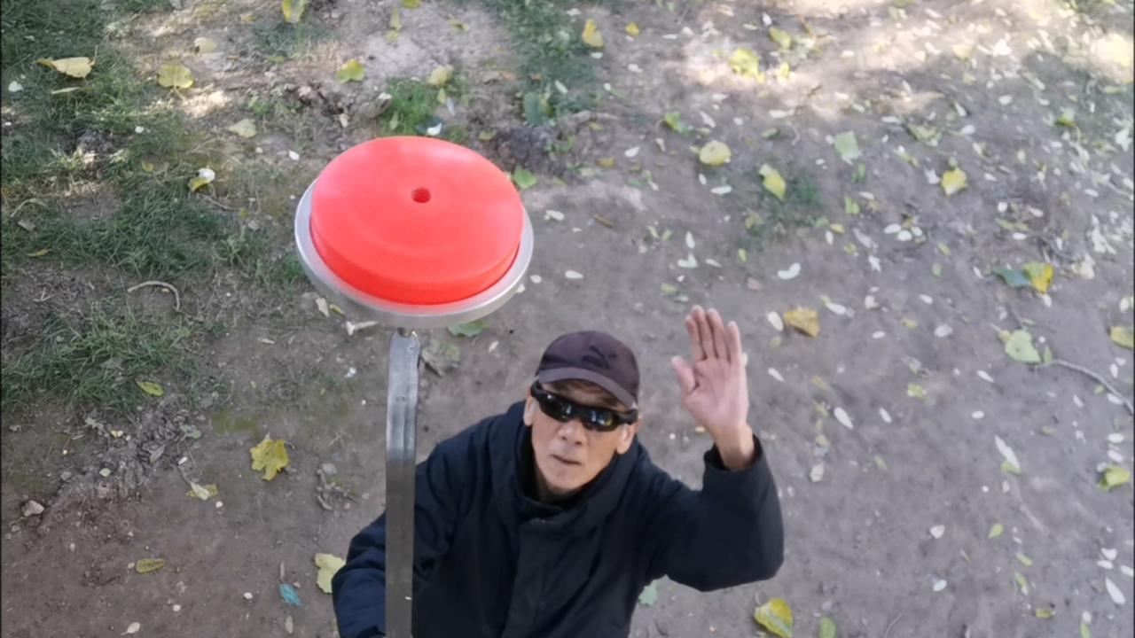 大爷晨练瞎捣鼓将原来不可视头顶支架改为可视拍摄!