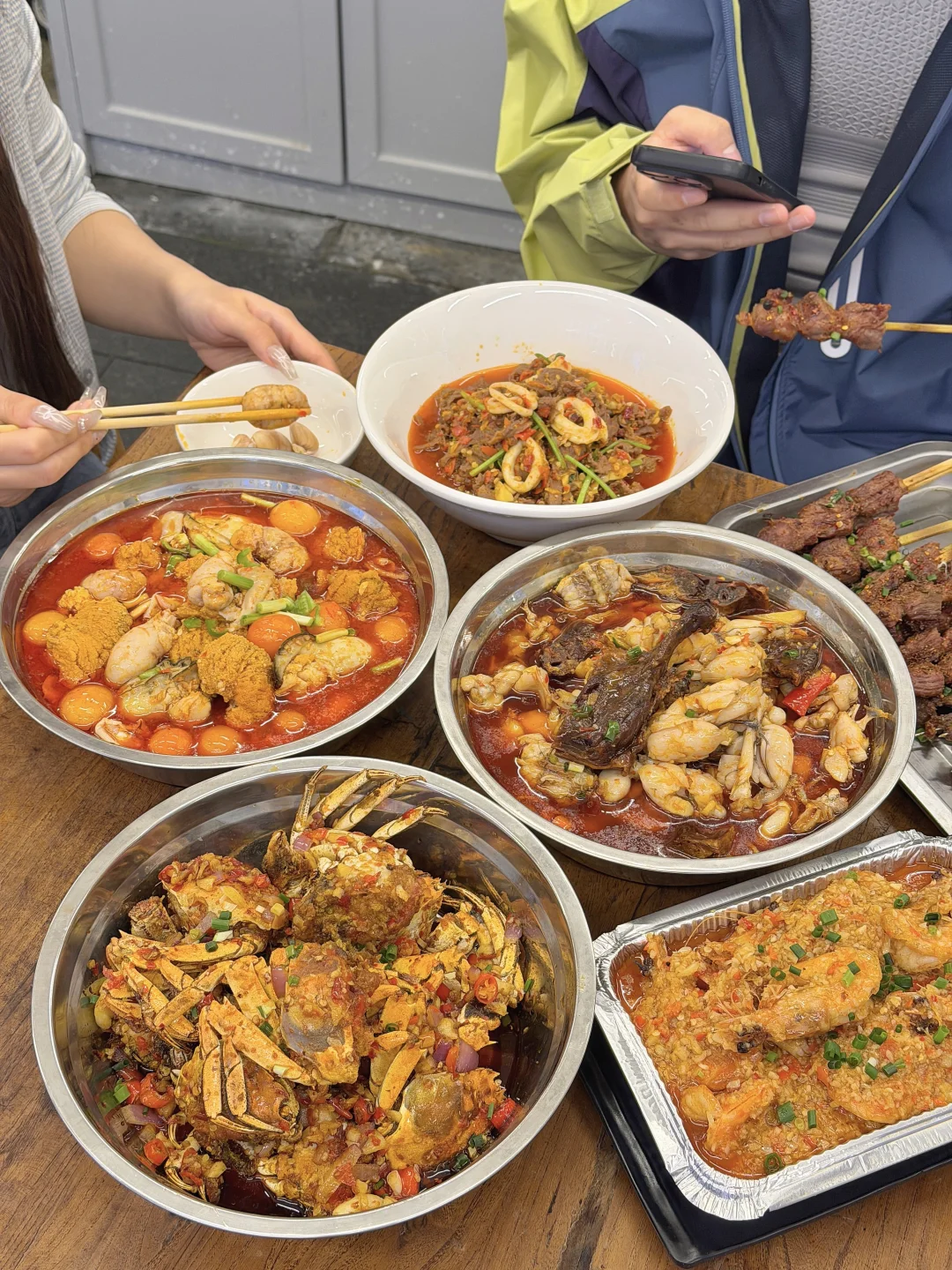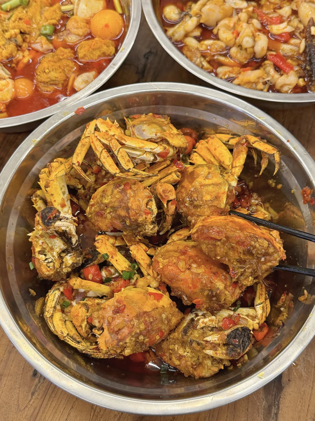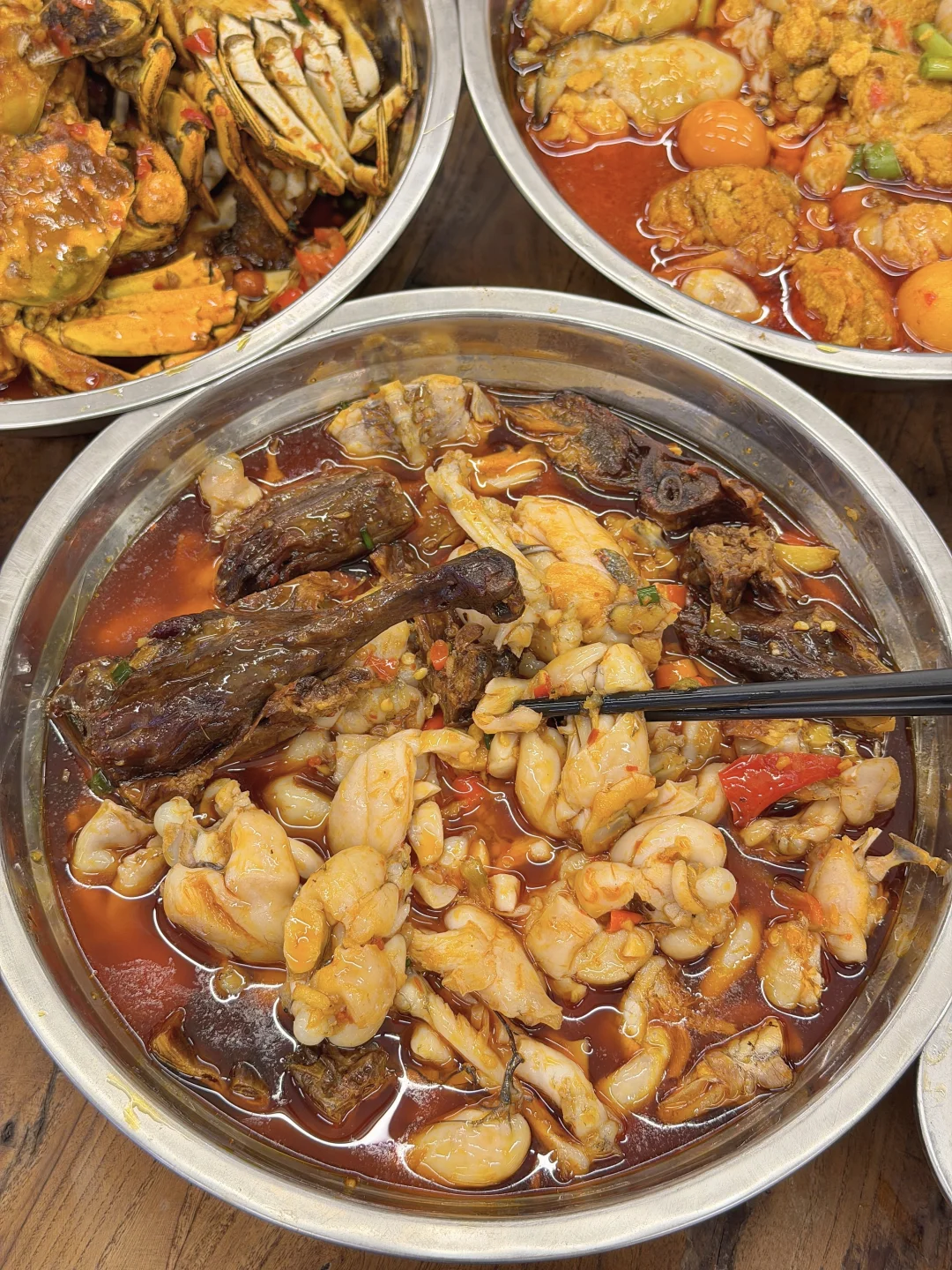 这周来吃第三次了!价格实惠份量大碗! 附近本地人都夸好吃,有烟火气的社区大排档! 叫:盆盆大排档,就在马厂地铁口附近!! 每次必点鱼籽鱼泡火锅、酱板鸭牛蛙、烧烤都吼吼吃!