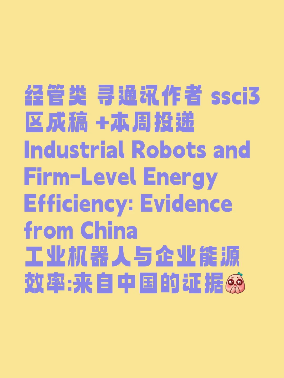 经管类 寻通讯作者 ssci3区成稿 +本周投递