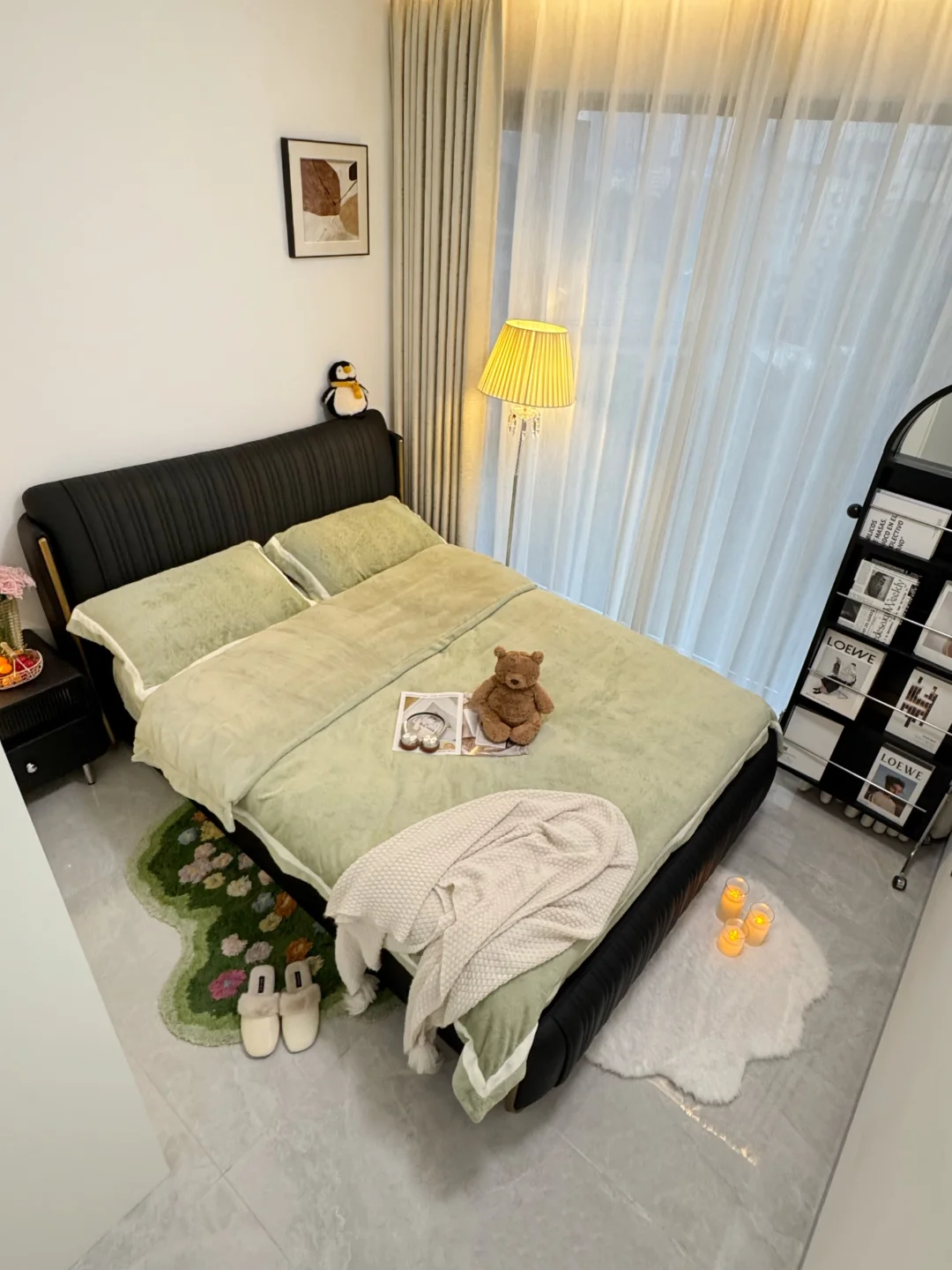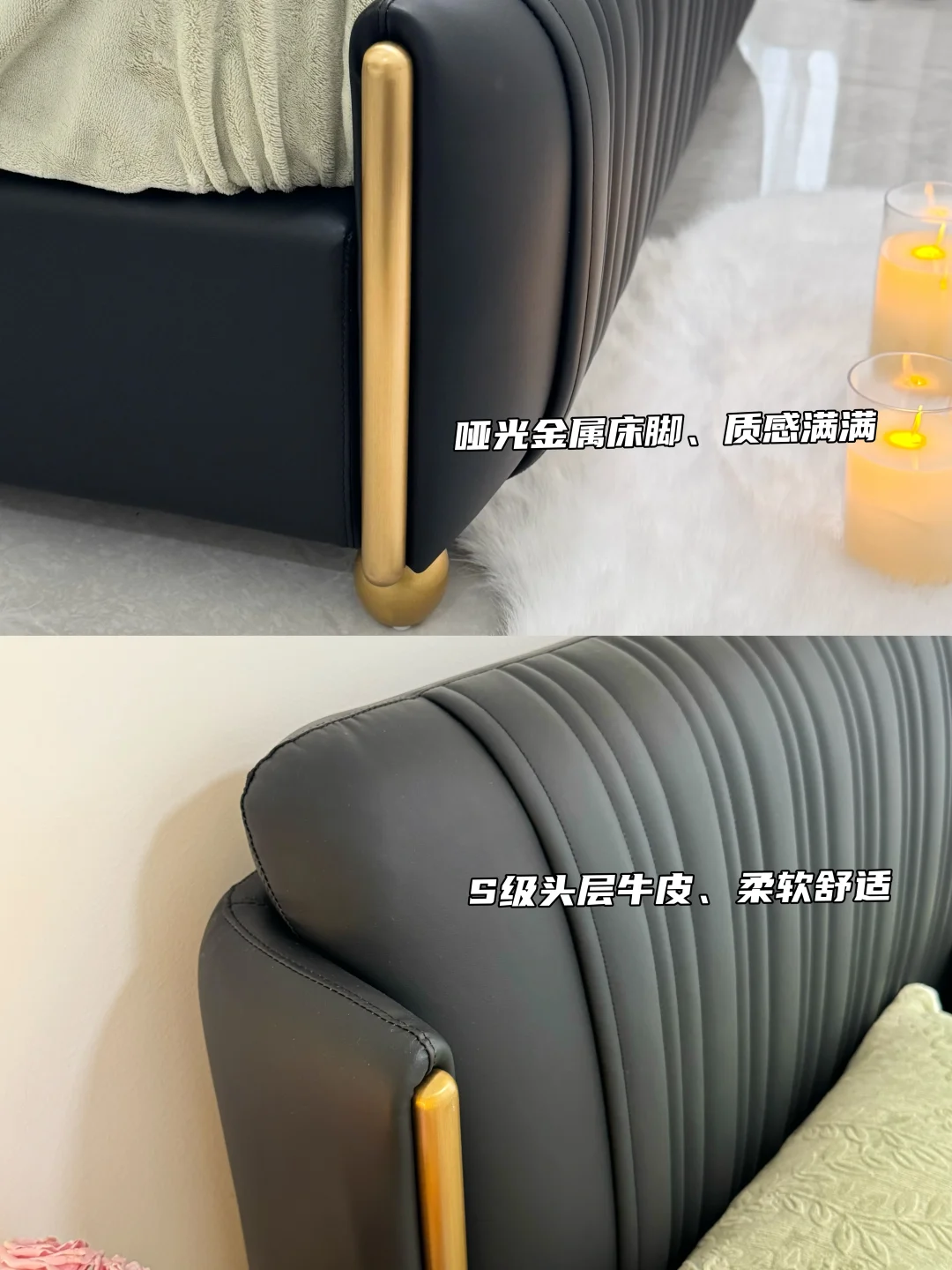 它的细节做得也很到位、连侧边那圈金属饰条都特别精致,小小一处亮点,就让整个卧室的质感提升不少✨