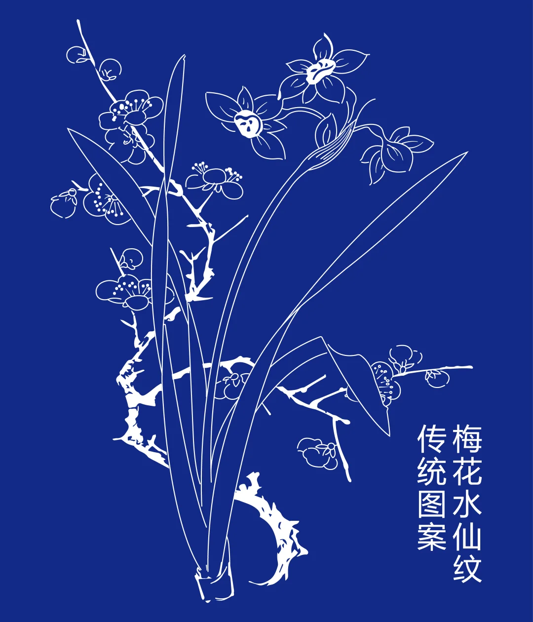 梅花与水仙纹样组合是中国传统装饰艺术中的经典题材,两者结合既体现自然之美,又蕴含深厚的文化寓意。