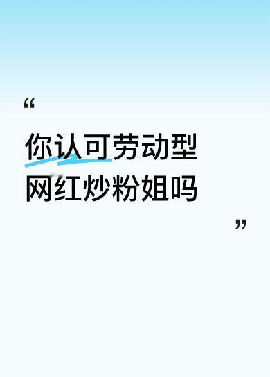 我挺认可炒粉姐的。网上关于她的视频火了后,很多人质疑。毕竟她作为炒粉摊摊主,每天穿着时尚、面容精致,和大家印象里的小摊主形象差太多,有人揣测她是炒作作秀。 但看过她直播的都知道,她动作利落、颠勺熟练,明显不是短时间为炒作才出摊。她开直播也只是想多吸引食客、增加收入,新媒体时代,这宣传方式很常见。 这事儿其实暴露了大家对固有职业的刻板印象。凭什么出摊者就不能时尚精致?“精致”不是白领专属。我们应该把她的反差形象看成乐观的生活态度,少点偏见,多些包容。