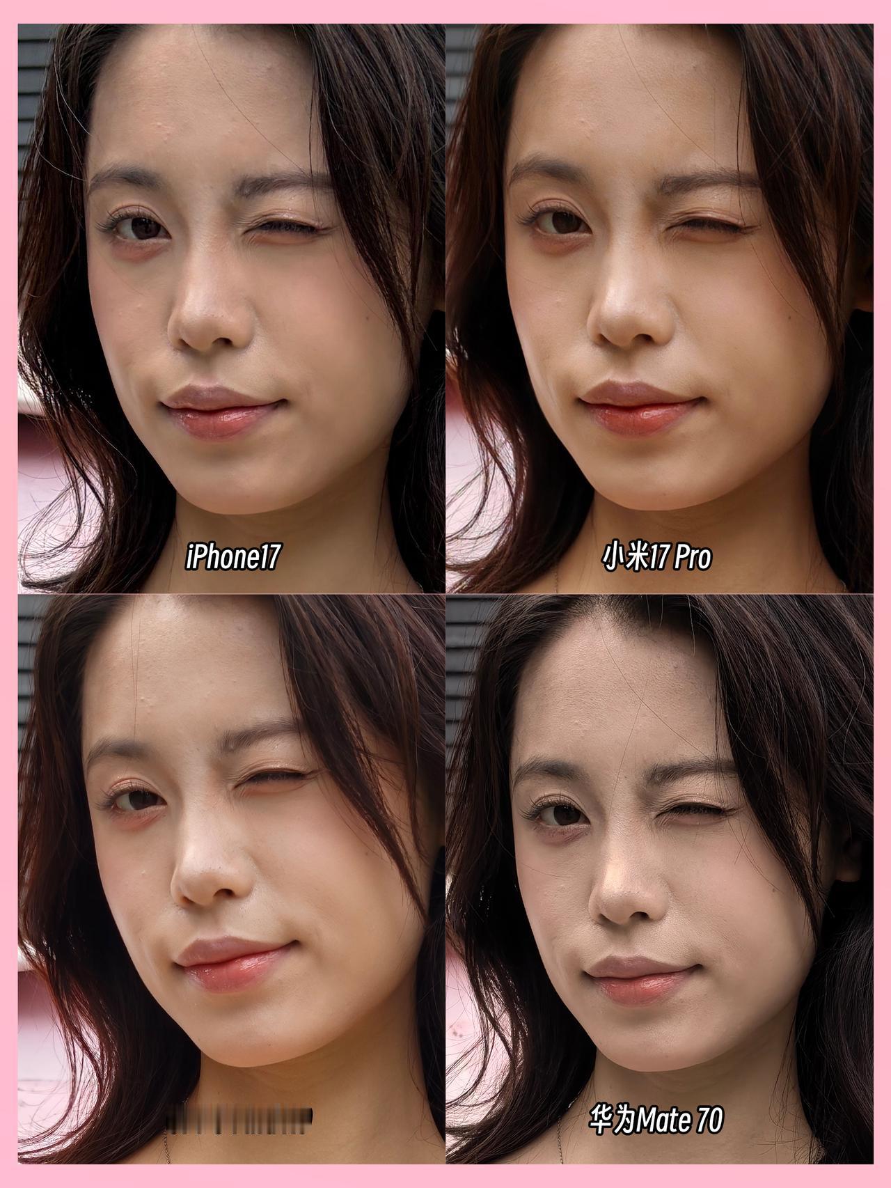 年底zui火的四大旗舰,你觉得谁拍的好看? 想换手机上网一看全是这几款,太火了,iPhone 17、小米17 Pro、OPPO Find X9和华为Mate70都有人在说,这应该就是目前市场中zui火的四大旗舰了吧? 网上还有不少网友在发这四大旗舰的样张对比,大家觉得谁拍得更好看? 拍人像都话这几款都是大旗舰,效果都挺不错的。苹果的画质很清晰,风格是比较真实自然的那种。小米17 Pro美颜效果不错,放大看磨皮很明显。 华为的画质细节很不错,放大看也很清楚,但没咋美颜。OPPO的整体看着更自然,有Ultra级的丹霞色彩还原镜头,所以肤色看着更自然,5000万像素哈苏8k支出照片放大看也很清晰。 我个人是比较喜欢OPPO这种风格的,大家更喜欢哪台的拍照效果呢?
