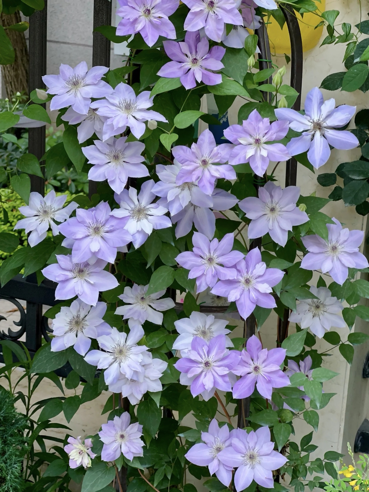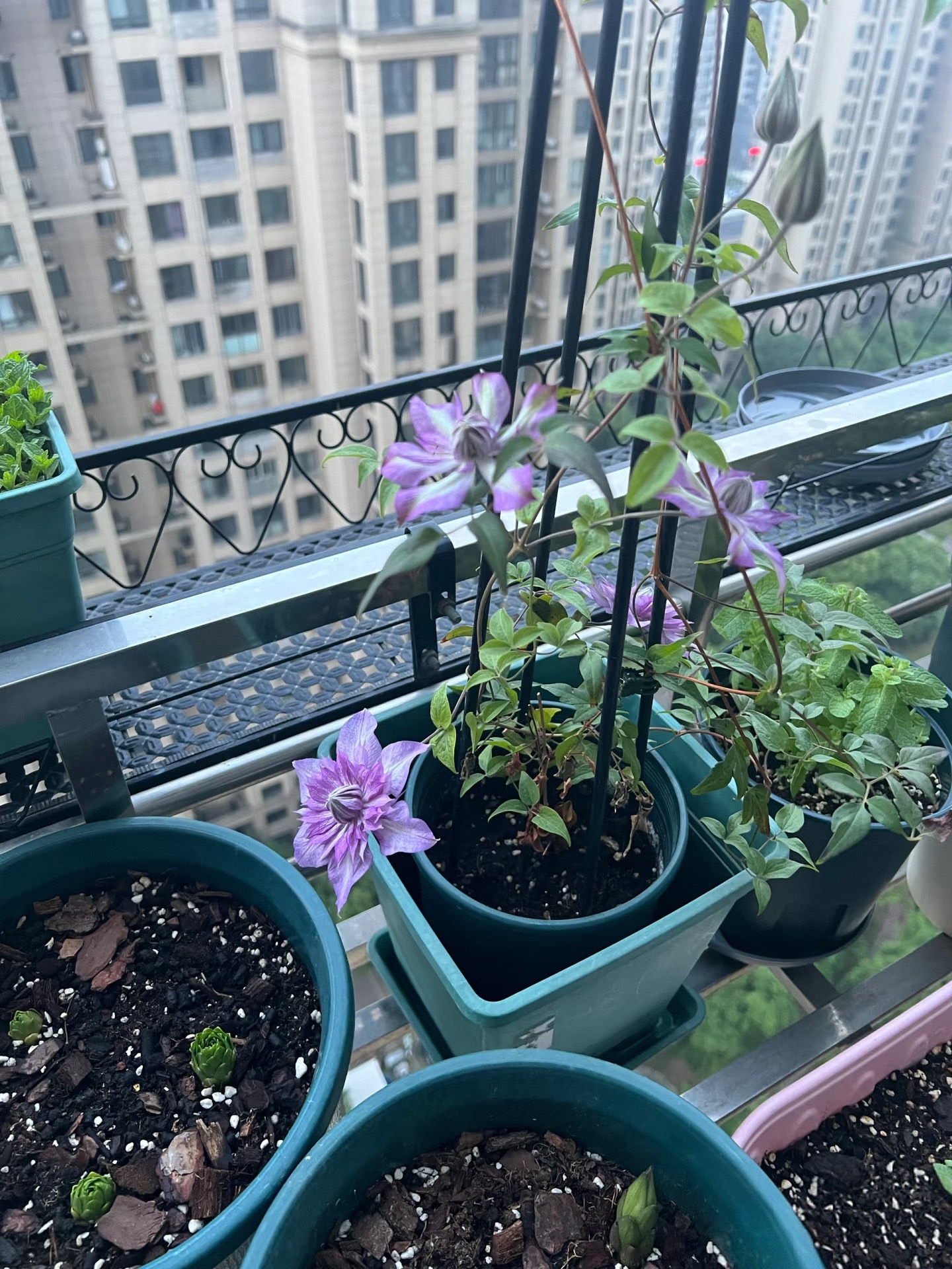 台友们收到铁线莲小苗别慌,咱一步步来,保准它扎根长藤! 先说说土壤。 不用死记比例,基础款就是泥炭土混珍珠岩和松鳞,想更透气就加赤玉土、绿沸石。 要是阳台种,多塞点珍珠岩(别心疼),根呼吸顺畅才长得快! 珍珠岩一两年会变粉,到时候补点就行,小麻烦不算事。 露台或地栽更随意,土疏松点就成。 接着说栽苗。 网购的小苗要么裸根,要么装营养钵。 先把苗小心取出来,用手轻轻打散根部的土块。 别担心伤根,这是给它 “松筋骨”,能促新根长出来。要是裸根苗,记得先泡半小时多菌灵水,消消毒更放心。 花盆选对也关键。 一年以下的小苗,用一加仑盆刚好! 别一上来就用大盆,小苗住 “大别墅” 容易闷根,等它枝条长过盆口、根从盆底冒出来,再换大盆不迟,塑料盆、陶盆都能用。 最后说施肥。 拌土时,加底肥,鸡粪肥、羊粪肥都行,土和肥比例大概 15:1,别加多了烧根。 生长期想让藤长快,多施点氮肥;要开花就补磷肥。 记不住也没事,直接用花多多通用肥,撒点在盆土表面,浇水就慢慢释放养分,超省事儿! 这么一套下来,铁线莲很快就会抽新藤、冒花苞,到时候等着看 “藤本皇后” 开花吧。